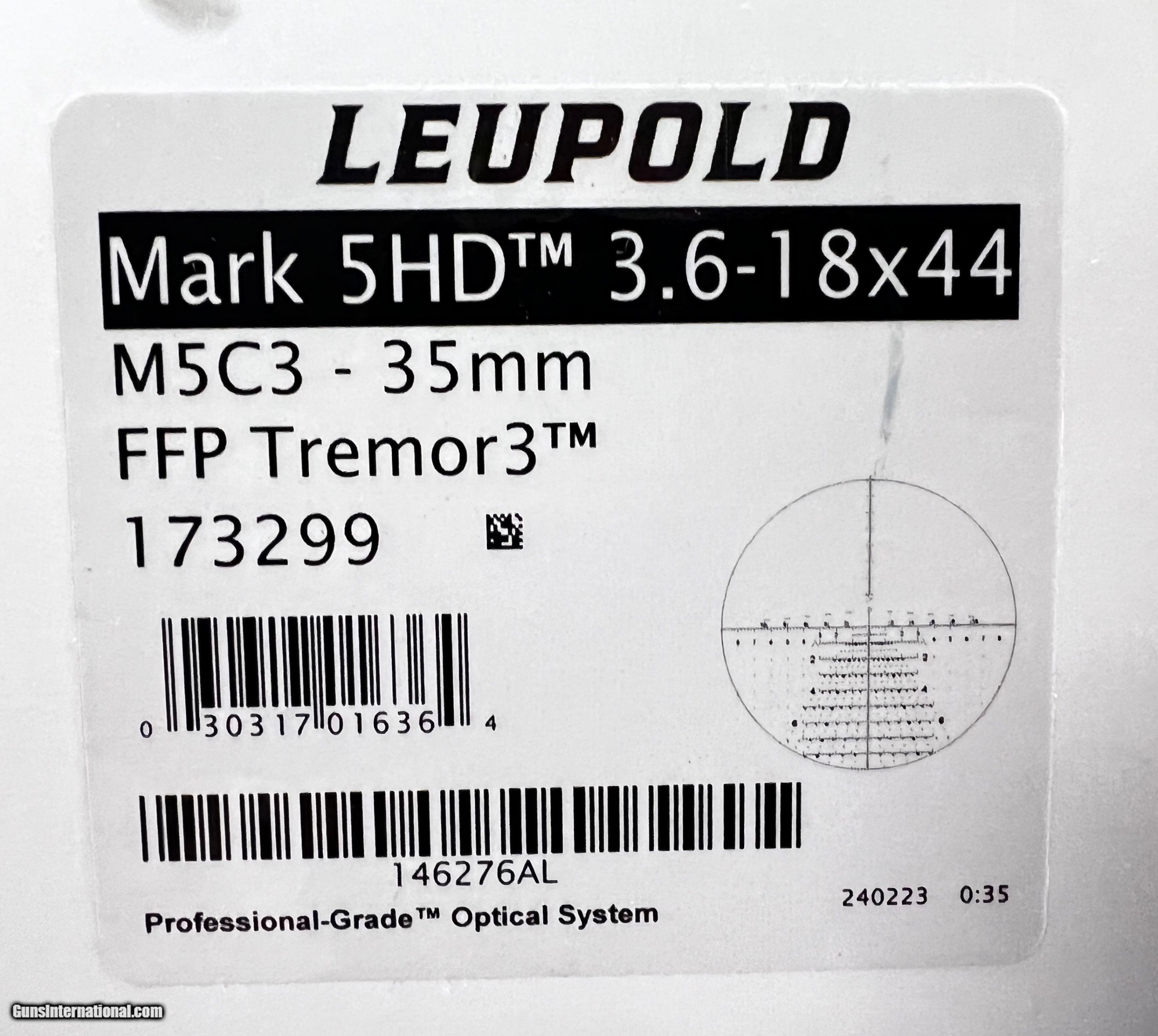 Description: Leupold Mark 5 HD 3.6x18x44 as new in factory box with Badger Ordnance mount SOLD |