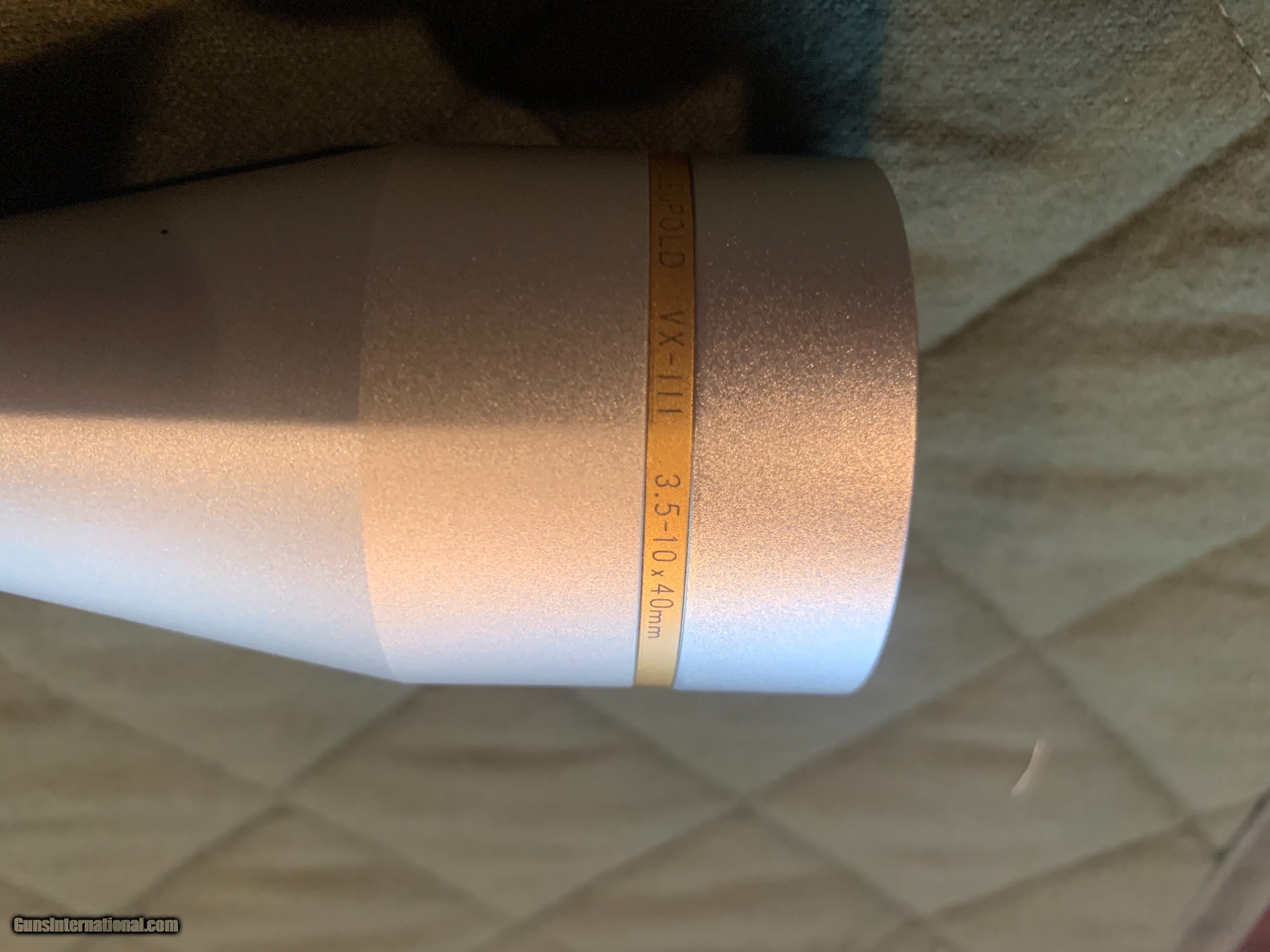 Description: Excellent condition Silver Leupold VX-III 3.5x10x40 with Plex Reticle. Hard to find Silver Scope with no ring marks. $450 shipped to the lower 48 states. SOLD |