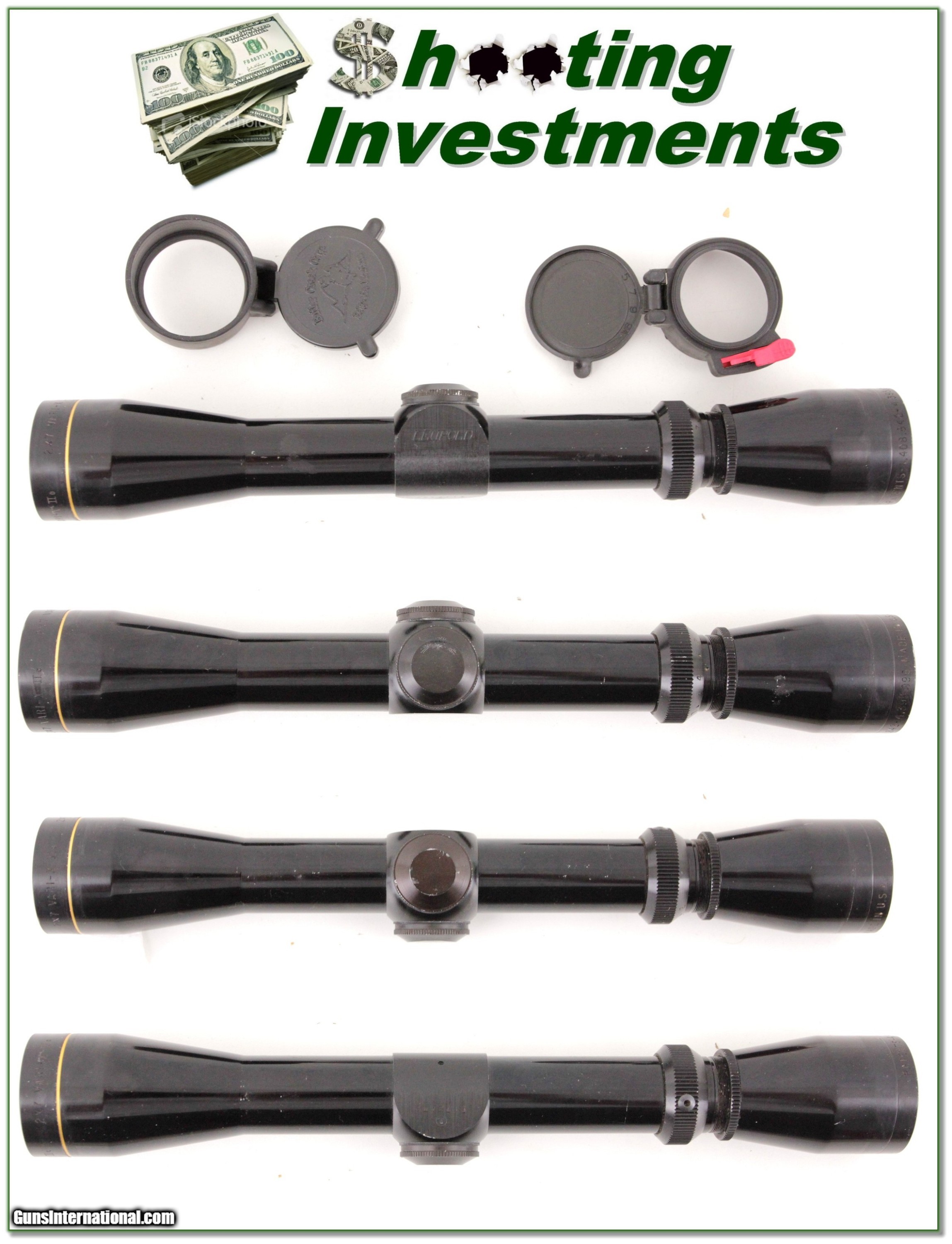 Description: This is a Leupold Vari-X II in 2-7 power. The optics are crystal clear with Duplex crosshairs. It has just a few minor marks and most will be covered when mounted. It comes with flip open covers as seen. And remember Leupold is warranted forever! Shipping is $11.95 and please email me with any questions or larger pictures. (Consign your quality firearms with Shooting Investments for only 12%! Let me know if you have any you would like to sell!) 19-0652s Payment: Payment is by Money Order, Cashiers Check or Personal Check. I can now also accept Credit Cards (MasterCard, Visa, Discover & American Express) with a 3% convenience fee. PayPal can be used for some items but never for firearms. Shipping: The shipping charge will be listed in each description. It is $39 for most firearms. Some heavy guns or those insured for over $2000 will be higher. Shipments to Alaska and Hawaii are higher because air shipment is required. Most firearms are shipped on Tuesday and Thursday and usually in 5 days of receipt of payment. We package all shipments carefully and insure them. Optics are shipped Priority Mail and most other non-firearm shipments are shipped First Class. Returns: Our return policy is simple. If for any reason you are not pleased with your purchase, you may return your item for a full refund of purchase price. Ammunition cannot be returned. It is important to us that you are happy. Guns cannot be fired or dissembled before returning them and they must be returned in the same condition as received. Notification of a return must occur with-in 3 days of receipt at your dealer. Shipping, convenience and dealer fees are not refundable and are the responsibility of the buyer. Lay-a-way: If needed, we offer a 60 day lay-a-way option on most firearms. It is 1/3 now, 1/3 in 30 days and 1/3 in 60 days. Lay-a-way firearm sales are final and if not completed the first payment cannot be returned. Consigning your firearms with Shooting Investments: We will help you get top dollar for your firearms. While most local guns shops charge 20% or more, our fee is only 12% with a minimum of $75. At your local gun shop it might take months to sell. Selling on-line provides instant access to thousands of interested buyers. You won’t find any other on-line dealer willing to sell your firearms for only 12% or listing every gun on 3 separate s. Selling through an House typically costs the seller 15% and the buyer an addition 15% (so 30%) and you have to wait several months to sell and longer to receive funds. If properly priced, we will sell your firearms in a few weeks. Send us an email or give us a call and we’ll explain how easy it is for you to get top dollar. Trading: Trading for use is really just buying your gun to re-sell. If you have a gun you want to trade, please email a picture and we will let you know what we can give or it. You will always get more if we sell it for you on consignment. Help for California Buyers: We are happy to ship to California. It is the buyer’s responsibility to make sure any item you buy is legal in your state. We are also happy to help with your purchase of a firearm from someone other than us. If you see a gun you would like to buy but the seller can’t or won’t ship to California they can ship to use and we’ll then ship it to your California dealer. The cost for this service is only $30 + shipping. Let us know if we can help! SOLD |