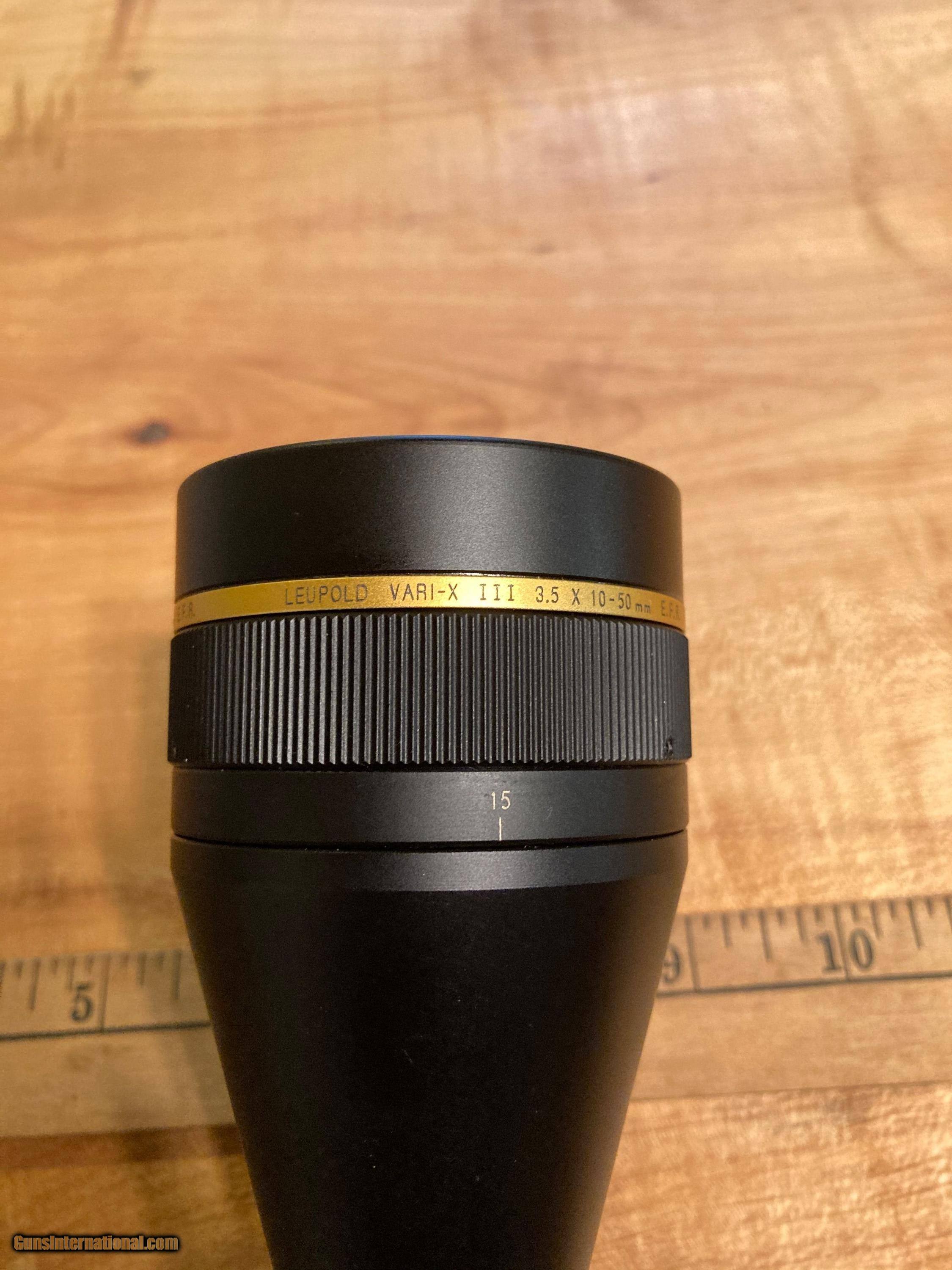 Description: LEUPOLD VARI-X III RIFLE SCOPE 3.5-10x50mm EFR WITH LEUPOLD REPAIR PAPERWORK, DUPLEX RETICLE, MATTE BLUED FINISH, ADJUSTABLE OBJECTIVE AND ONE INCH TUBE. eBay sells these, then charges you a sales tax, then charges you fees for PayPal. No extra fees with this listing. Check or money order accepted. No online payment systems. I ship items as quickly as possible, and many times numerous times a week, with no less frequency than once per week. Shipping is $15 CONUS. AK and HI a slight premium, where international sales are not being considered. See my other listings including Leupold, Burris, Leica, Nikon and Swarovski scopes, new and used. Some have the desirable gloss finish. My suggested process to purchase this item is to send me a text message or call me at 615 seven one four 8296, or email me at fieldpeektechniquegmail stating you wish to buy this item. Text and phones are preferred. I will respond payment directions (to who and where to make payment), and then change the listing to sold pending funds (SPF's). Once payment arrives, I will ship you the item and remove the listing SOLD |