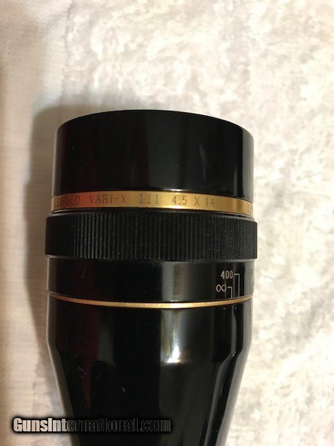 Description: I am selling a Leupold Vari-x III 4.5-14 a.o. gloss scope. The crosshairs are duplex, extremely slight mount marks, just barely visible. Other than that, scope is mint. No cloudyness, no scratches. No box. SOLD |