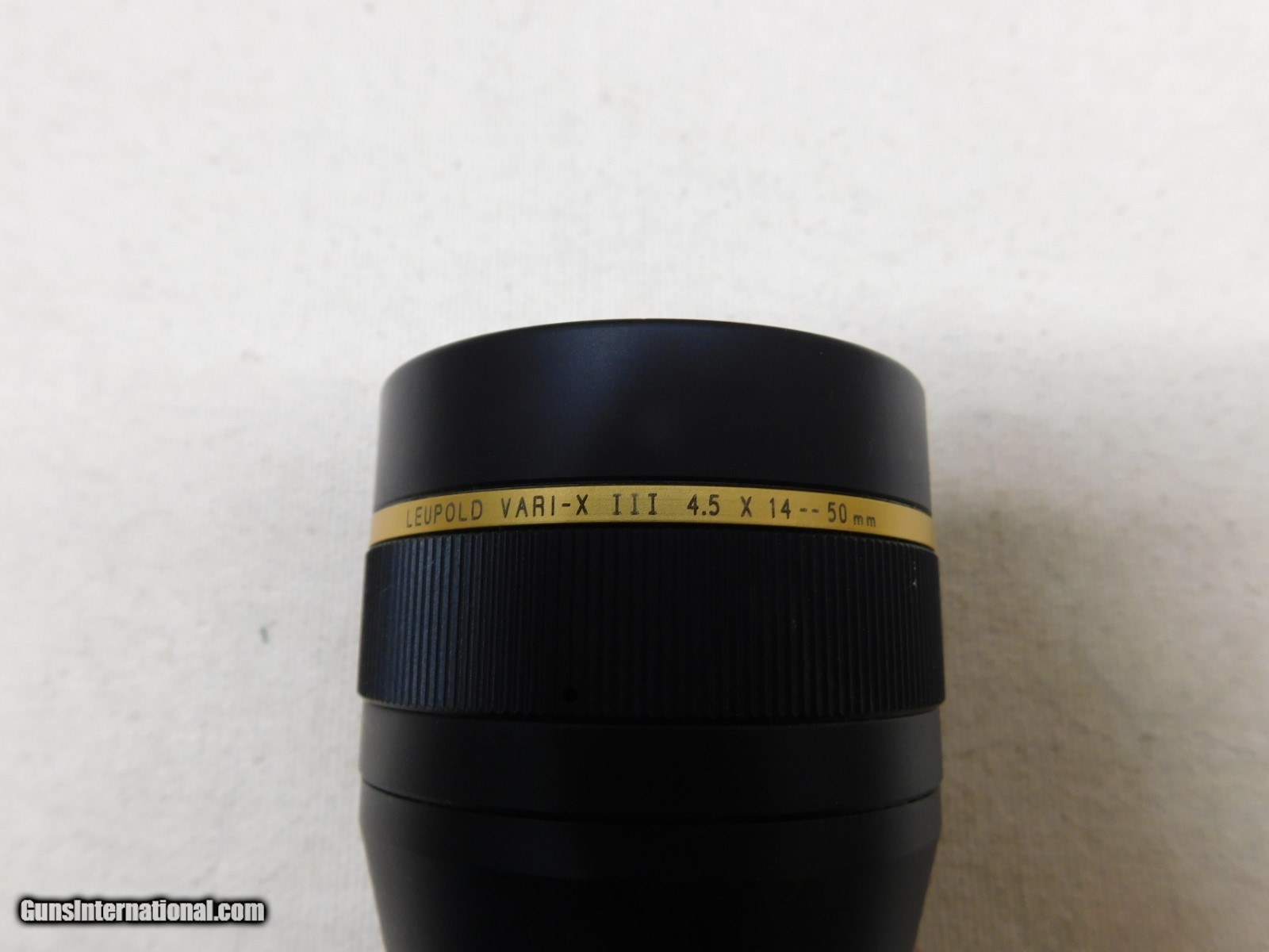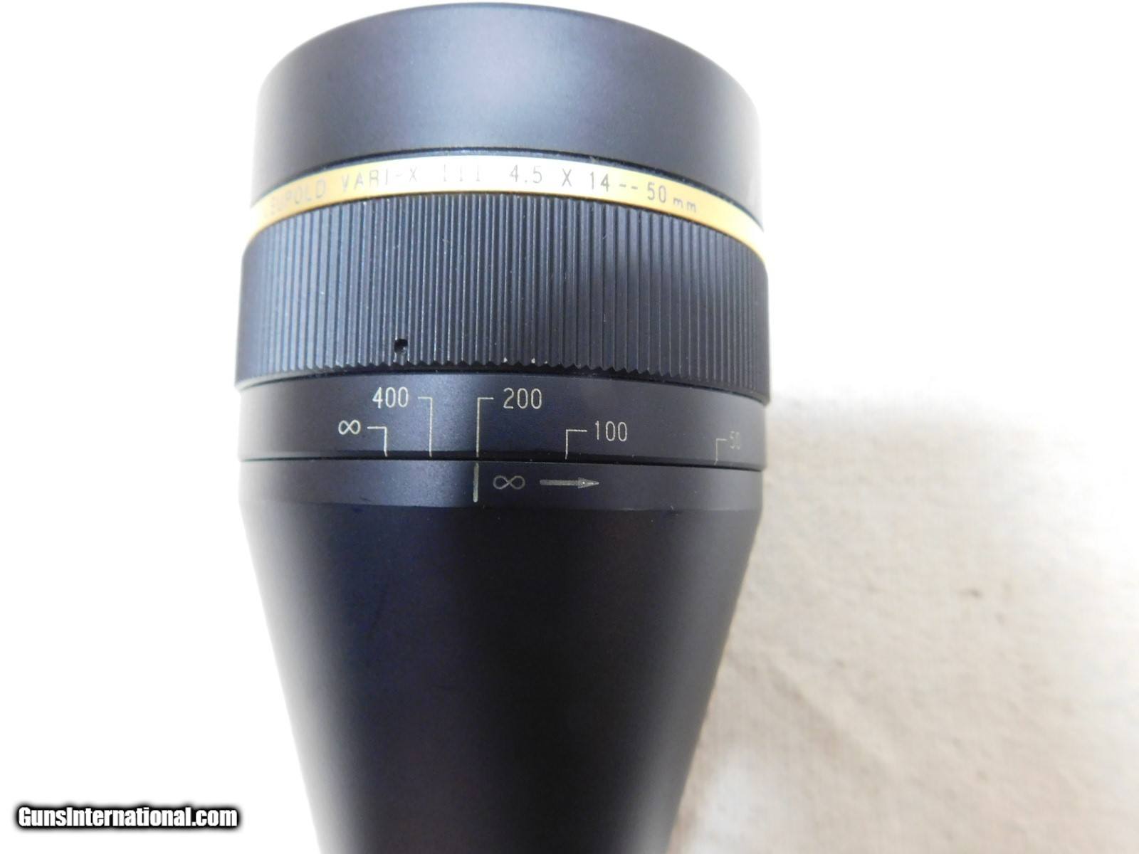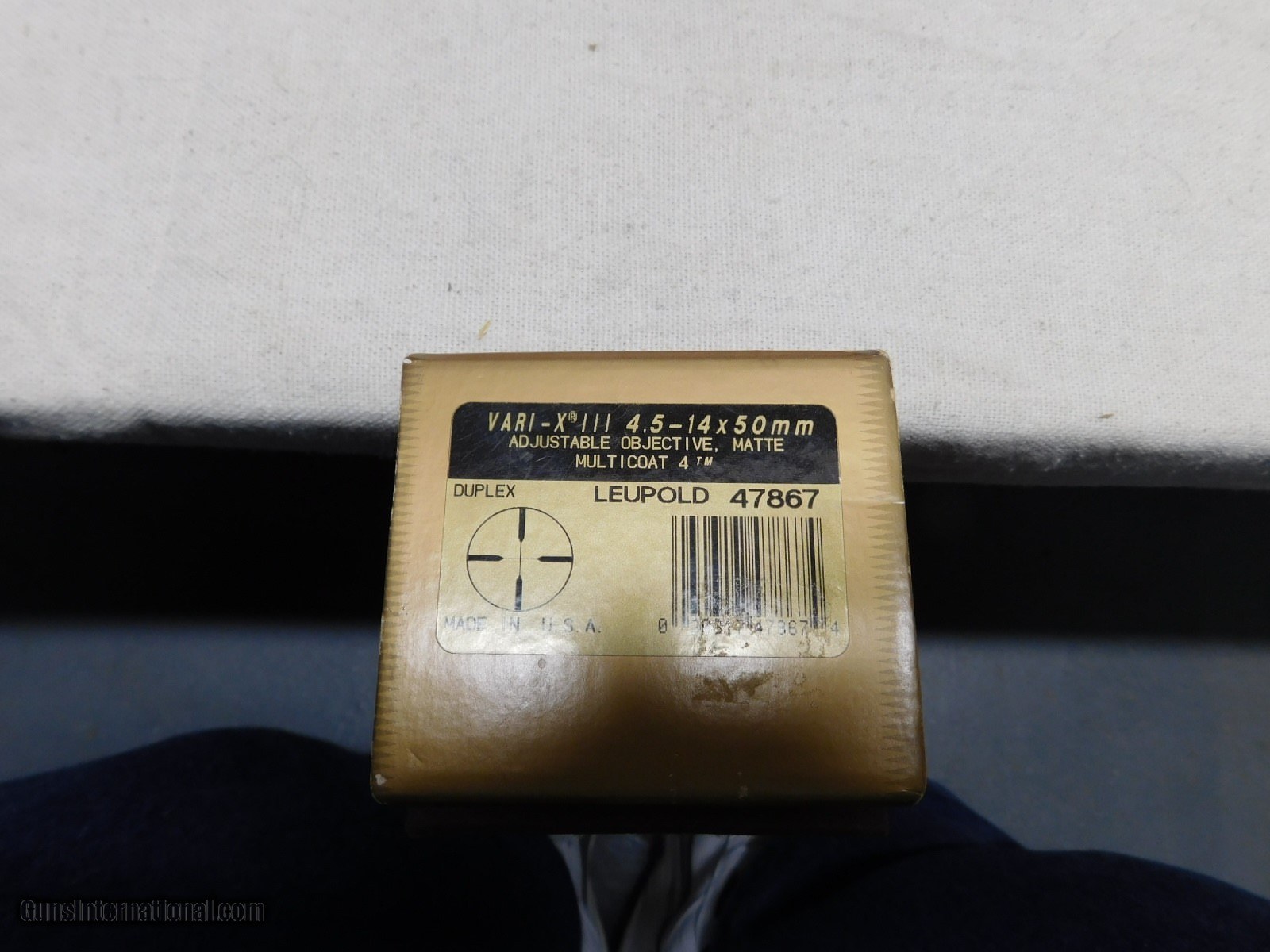 Description: Leupold Vari-x III 4.5-14 x50mm Scope,AO,Duplex,Matte,Bright Optics,Some minor ring marks,with Box and papers Store hours Thurs-Fri-10AM-8PM Sat-9AM-12PM All Other times please leave a message,Thank You! No California Sales Lower 48 State Sales only Pa. Residents 6% Sales Tax applicable Shipping $8.00 SOLD |