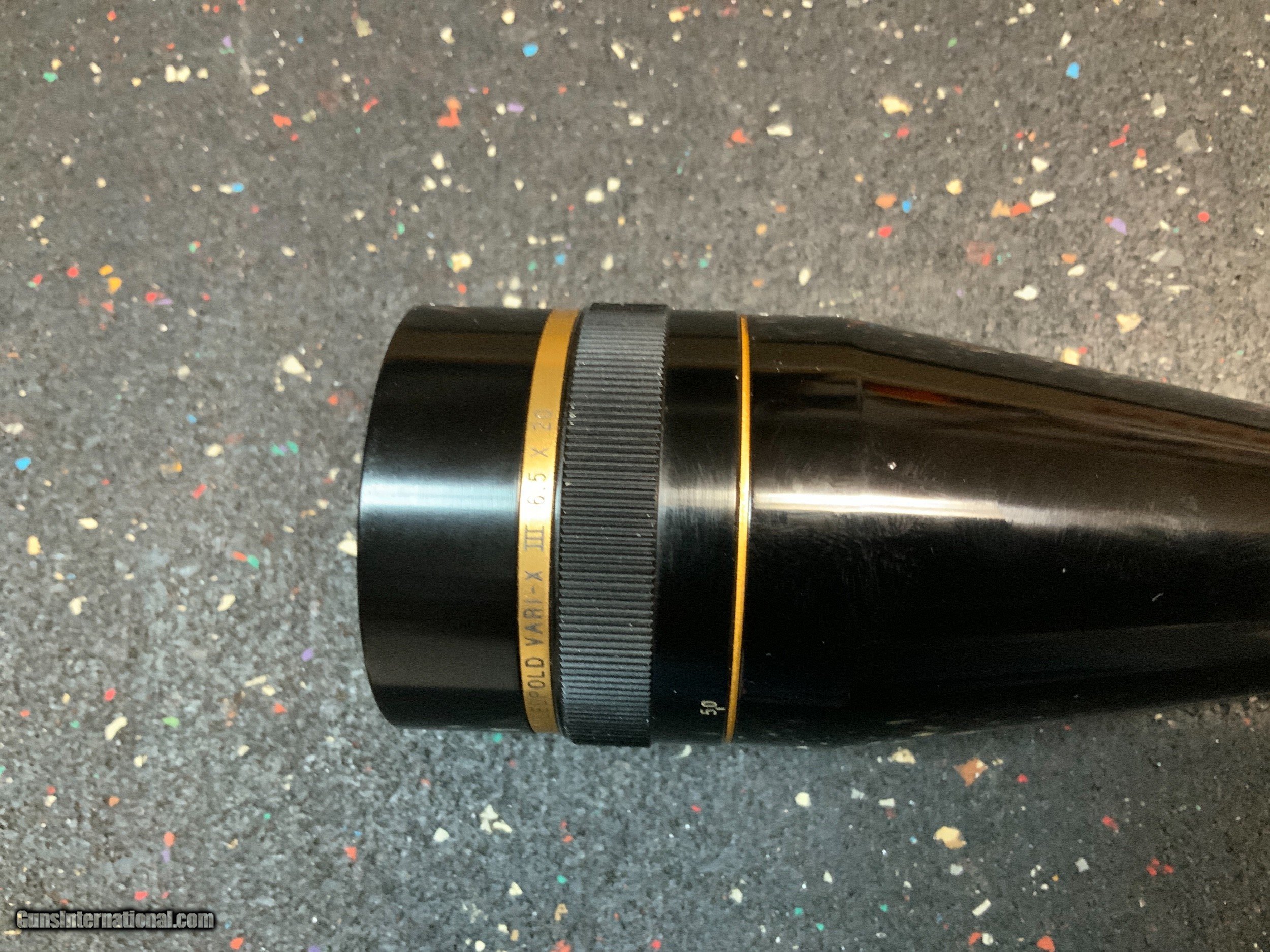 Description: (Sale Pending)Leupold VARI-X III 6.5 X 20 gloss finish with the fine duplex reticle. Lenses are perfect and scope is clea and bright. Target turrets. A couple minor cosmetic ring marks and a small scratch that is hardly noticeable. Pictures show what you get. Shipping included in the price. SOLD |