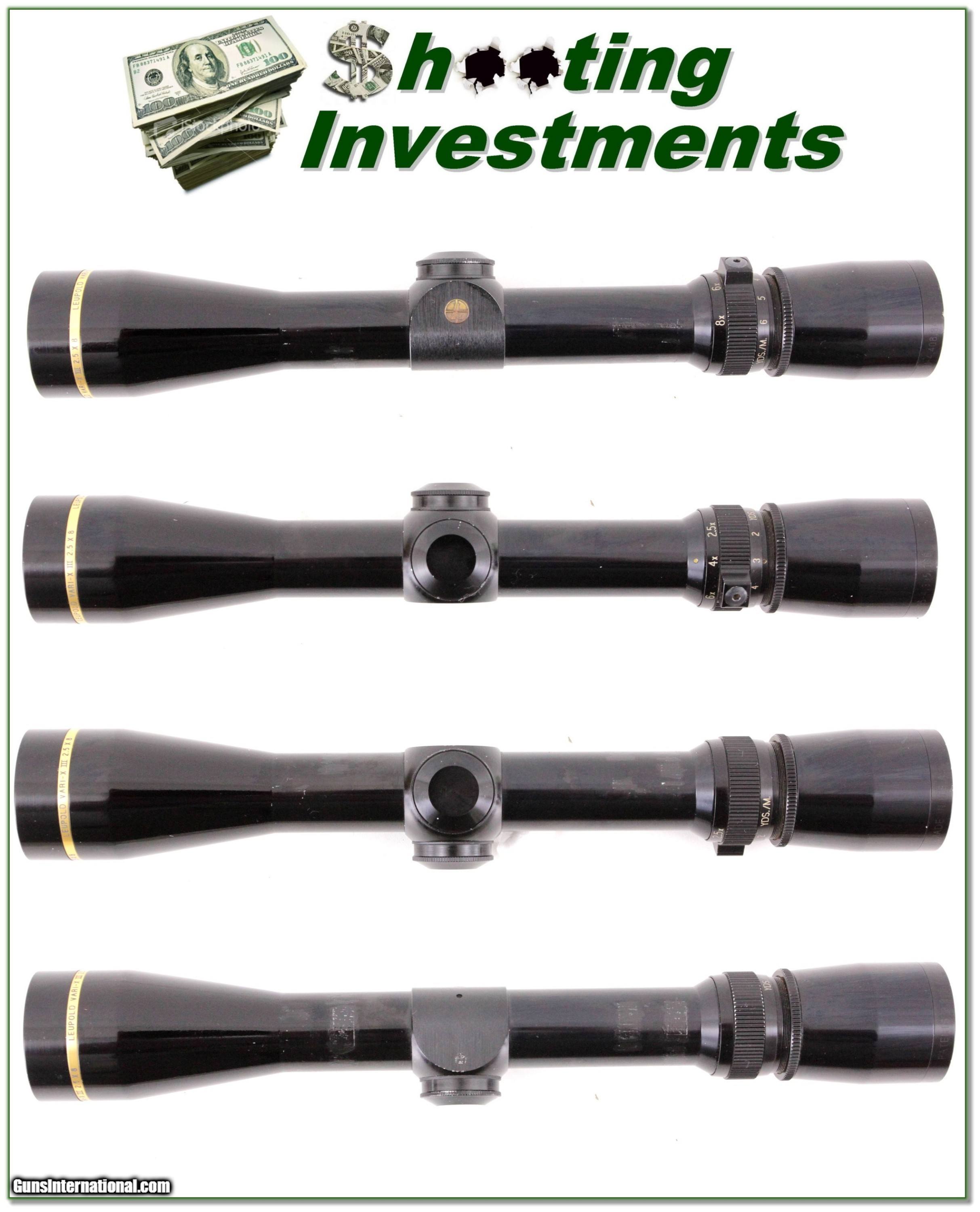 Description: This is a very nice Vari-X III 2.5 to 8 power scope. It has a 36mm objective and harder to find gloss finish. The optics are crystal clear with duplex crosshairs. As seen in the pictures there are some ring marks on the bottom of the scope. They will mostly be covered when mounted and what’s not covered shouldn’t be seen. And remember Leopold’s forever warrantee so not worries with this one….for life! Shipping is $11.95. Please email me with any questions or larger pictures. (Consign your quality firearms with Shooting Investments for only 12%! Let me know if you have any you would like to sell!) 19-0230s Payment: Payment is by Money Order, Cashiers Check or Personal Check. I can now also accept Credit Cards (MasterCard, Visa, Discover & American Express) with a 3% convenience fee. PayPal can be used for some items but never for firearms. Shipping: The shipping charge will be listed in each description. It is $39 for most firearms. Some heavy guns or those insured for over $2000 will be higher. Shipments to Alaska and Hawaii are higher because air shipment is required. Most firearms are shipped on Tuesday and Thursday and usually in 5 days of receipt of payment. We package all shipments carefully and insure them. Optics are shipped Priority Mail and most other non-firearm shipments are shipped First Class. Returns: Our return policy is simple. If for any reason you are not pleased with your purchase, you may return your item for a full refund of purchase price. Ammunition cannot be returned. It is important to us that you are happy. Guns cannot be fired or dissembled before returning them and they must be returned in the same condition as received. Notification of a return must occur with-in 3 days of receipt at your dealer. Shipping, convenience and dealer fees are not refundable and are the responsibility of the buyer. Lay-a-way: If needed, we offer a 60 day lay-a-way option on most firearms. It is 1/3 now, 1/3 in 30 days and 1/3 in 60 days. Lay-a-way firearm sales are final and if not completed the first payment cannot be returned. Consigning your firearms with Shooting Investments: We will help you get top dollar for your firearms. While most local guns shops charge 20% or more, our fee is only 12% with a minimum of $75. At your local gun shop it might take months to sell. Selling on-line provides instant access to thousands of interested buyers. You won’t find any other on-line dealer willing to sell your firearms for only 12% or listing every gun on 3 separate s. Selling through an House typically costs the seller 15% and the buyer an addition 15% (so 30%) and you have to wait several months to sell and longer to receive funds. If properly priced, we will sell your firearms in a few weeks. Send us an email or give us a call and we’ll explain how easy it is for you to get top dollar. Trading: Trading for use is really just buying your gun to re-sell. If you have a gun you want to trade, please email a picture and we will let you know what we can give or it. You will always get more if we sell it for you on consignment. Help for California Buyers: We are happy to ship to California. It is the buyer’s responsibility to make sure any item you buy is legal in your state. We are also happy to help with your purchase of a firearm from someone other than us. If you see a gun you would like to buy but the seller can’t or won’t ship to California they can ship to use and we’ll then ship it to your California dealer. The cost for this service is only $30 + shipping. Let us know if we can help! SOLD |