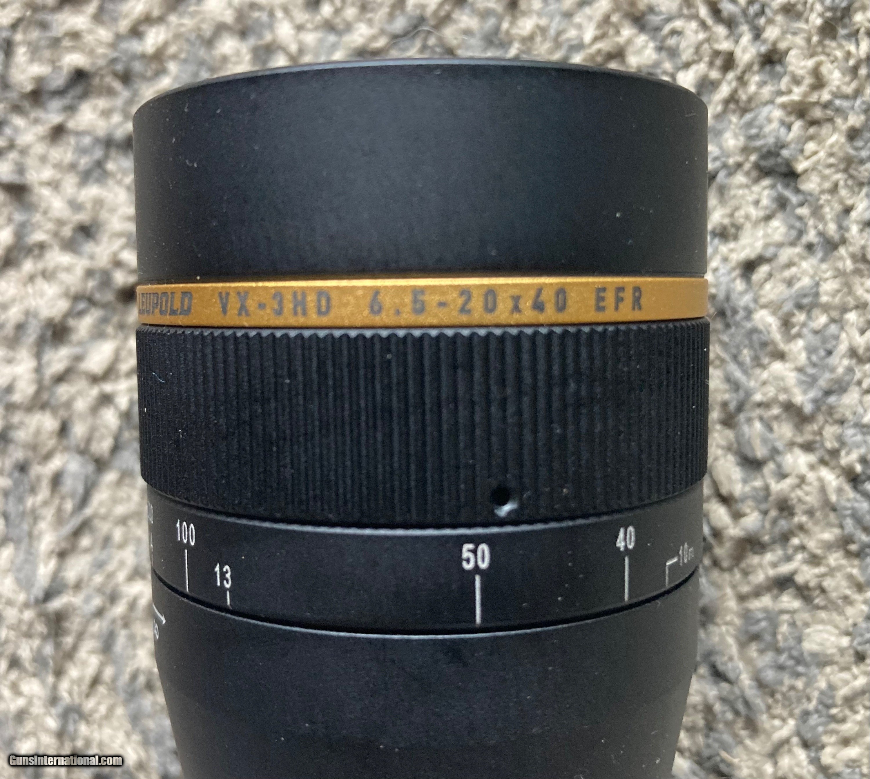 Description: ------Sold to Allen------ Leupold VX3-HD 6.5-20X40 EFR CDS-T with fine cross hairs. The scope is as new without original box. There are no ring marks and no other marks or marrs. The optics are clear with no scratches. The scope was mounted on my Remington 40x 22LR and worked perfectly. I will ship UPS or USPS Priority conus for $20.00. I will supply tracking number upon shipment. I accept postal money order, bank cashiers check or your personal check. Will ship when your payment clears my bank. SOLD |