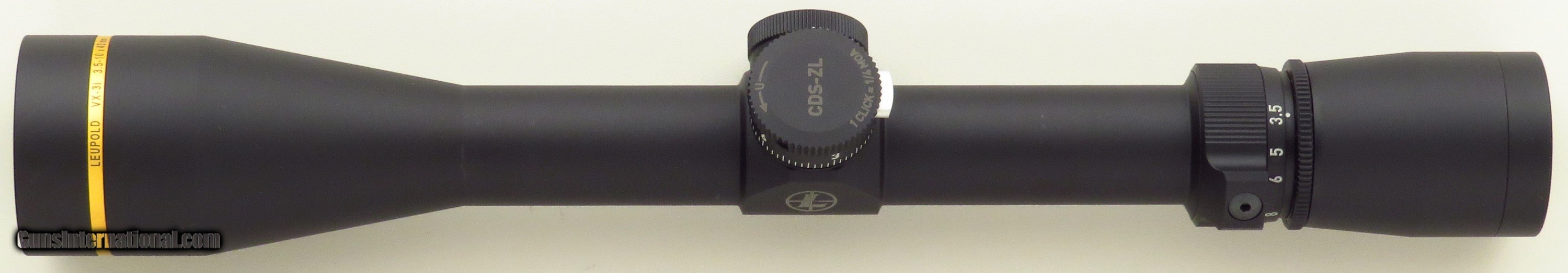Description: Leupold VX-3i 3.5-10x40 CDS-ZL. Serial 348217AG has a 1-inch tube, matte finish, DuPlex reticle and CDS elevation dial. Mounted but never taken to the range or afield. Finish is over 99 percent. Optics and lens coatings are pristine. No box or papers. The price is firm. $400 plus shipping. SOLD |