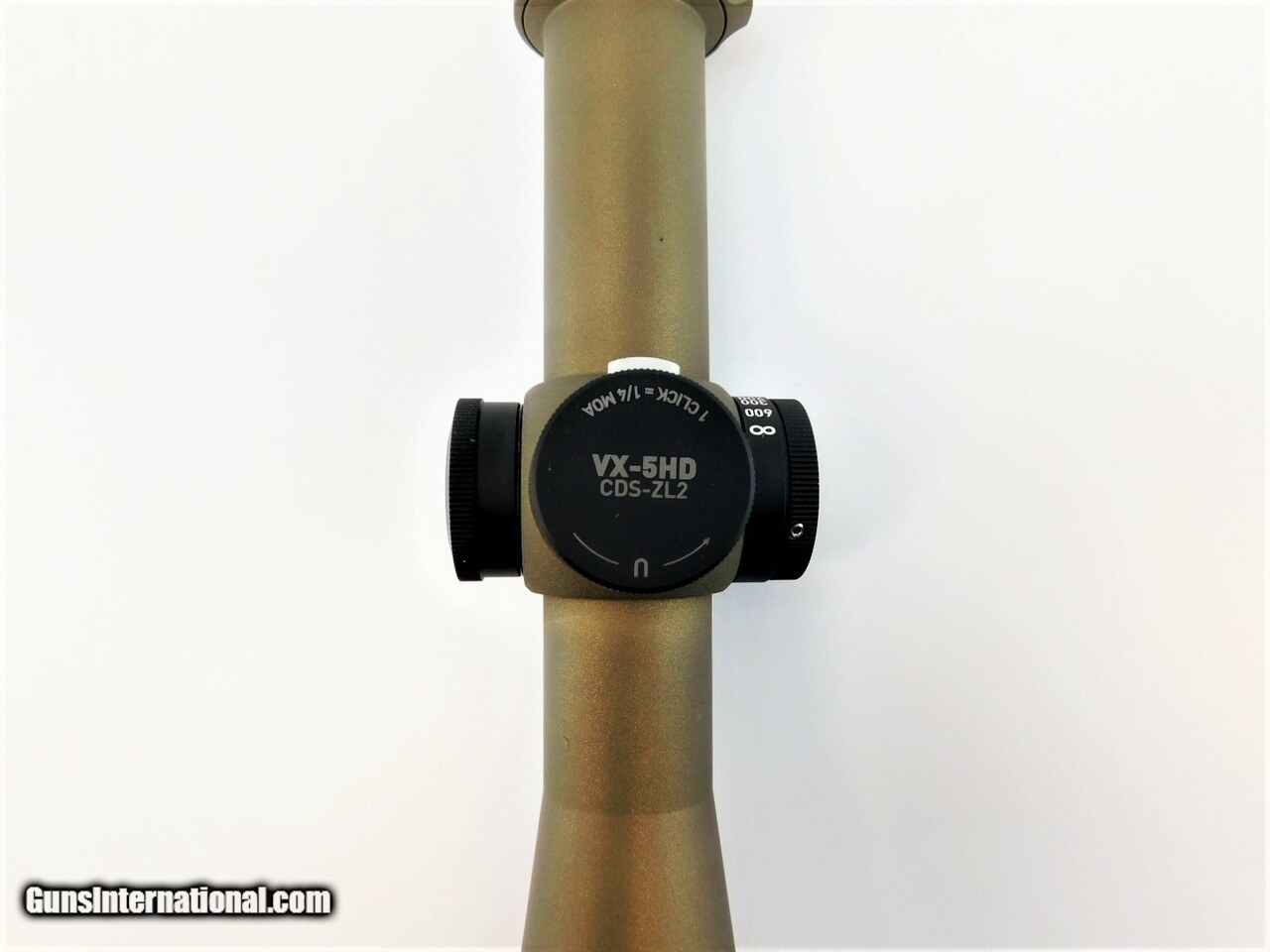 Description: Manufacturer: Leupold Model: VX-5HD 3-15x44mm CDS-ZL2 SKU: 171715 BB Finish: Burnt Bronze Cerakote Magnification: 3x - 15x Objective: 44mm Tube Diameter: 30mm Overall Length: 13.53" Weight: 19.7 oz Reticle: Wind-Plex This is a factory new scope that features a custom Cerakote finish that has been applied by US CERAKOTE, our local, trained and certified Cerakote technicians. Cerakote is a ceramic and polymer based proprietary formulation that offers industry leading durability, hardness, scratch resistance, corrosion resistance, flexibility, heat and chemical resistance. This scope is made for anything and everything. Its 3-15 magnification range lets you take full advantage of any situation. Crank the power down to three for thick timber hunting, ratchet it up to 15 for your trek across the open plains, or go anywhere in-between during your range days. The VX-5HD 3-15x44 has the versatility to dominate them all. The VX-5HD defines relentless versatility. Its wide magnification ranges give hunters and shooters the ability to adapt to any environment. With the Twilight Max HD Light Management System, it’s purpose built for the toughest lighting conditions. Rugged and reliable, the VX-5HD is ready for your next adventure. SOLD |