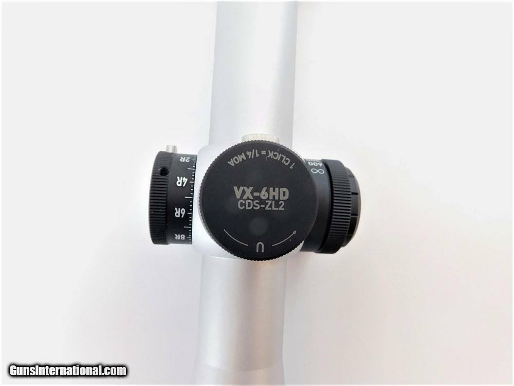 Description: Manufacturer: Leupold Model: VX 6HD 3-18x44mm CDS-ZL2 Finish: Satin Silver Cerakote Sku: 171565 SS Magnification: 3x - 18x Objective: 44mm Tube Diameter: 30mm Overall Length: 13.6" Weight: 21.3 oz Reticle: FireDot Duplex - Illuminated This scope features a custom Cerakote finish that has been applied by US CERAKOTE, our local trained and certified Cerakote technicians. Cerakote is a ceramic and polymer based proprietary formulation that offers industry leading durability, hardness, scratch resistance, corrosion resistance, flexibility, heat and chemical resistance. All items are factory new in box unless otherwise stated. Based on the information available to us, the above specifications describe this item to the best of our knowledge. For further information, please contact or visit the manufacturer's . SOLD |