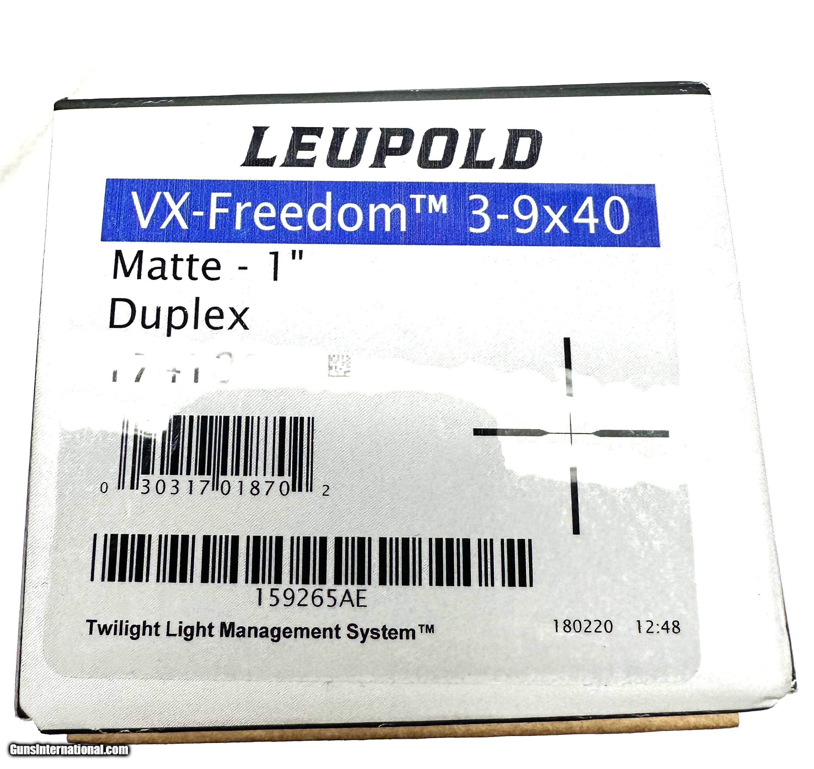 Description: Leupold VX-Freedom 3-9 X 40, Matte, 1" Duplex, ANIB. Scope caps. #174180 SOLD |