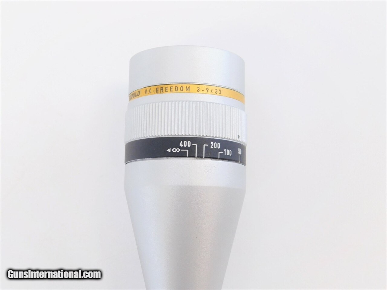 Description: Manufacturer: Leupold Model: VX-Freedom EFR 3-9x33mm Finish: Satin Silver Cerakote SKU: 175075 SS Magnification: 3-9x Objective: 33mm Tube Diameter: 1" Reticle: Fine Duplex Length: 11.43" Weight: 12.1 oz This is a factory new scope that features a custom Cerakote finish that has been applied by US CERAKOTE, our local, trained and certified Cerakote technicians. Cerakote is a ceramic and polymer based proprietary formulation that offers industry leading durability, hardness, scratch resistance, corrosion resistance, flexibility, heat and chemical resistance. All items are factory new in box unless otherwise stated. Based on the information available to us, the above specifications describe this item to the best of our knowledge. For further information, please contact or visit the manufacturer's . SOLD |