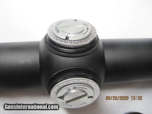 Description: Matte finish. Lenses are excellent! Elevation and windage adjustment look new. Tube is excelelnt with no ring marks. Orginal box, registration card, Leupold cloth are included. Not sure if this is the "compact" version. SOLD |
