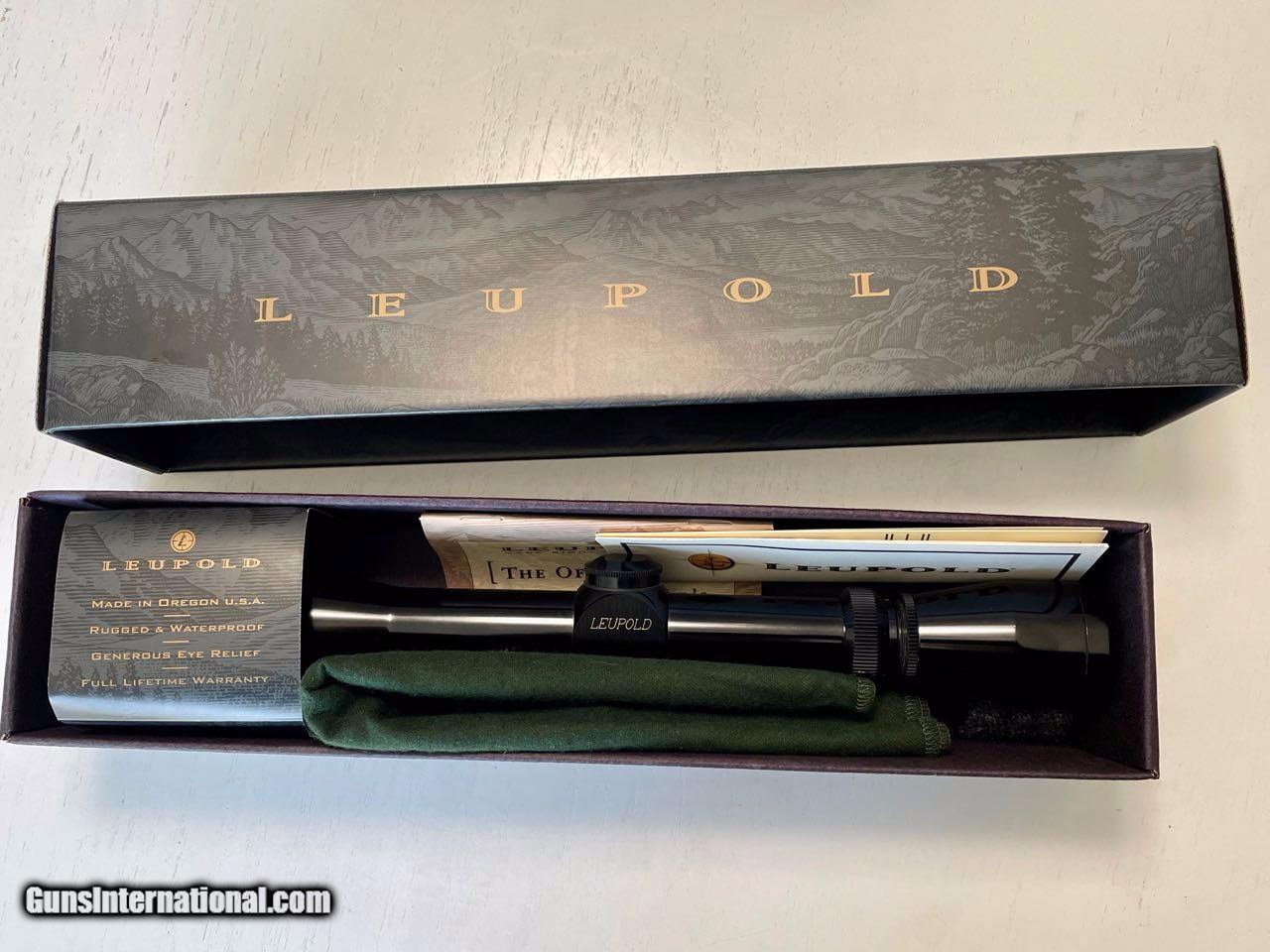 Description: Like new Leupold 3x9 40mm VX II scope. Used one season. Original owner. Click adjustments - this is the best VX II scope Leupold ever made. Superior tracking system. No scratches. High demand on Ebay and elsewhere. Duplex crosshairs. Gloss. Original box and materials. $295.00, plus shipping. SOLD |