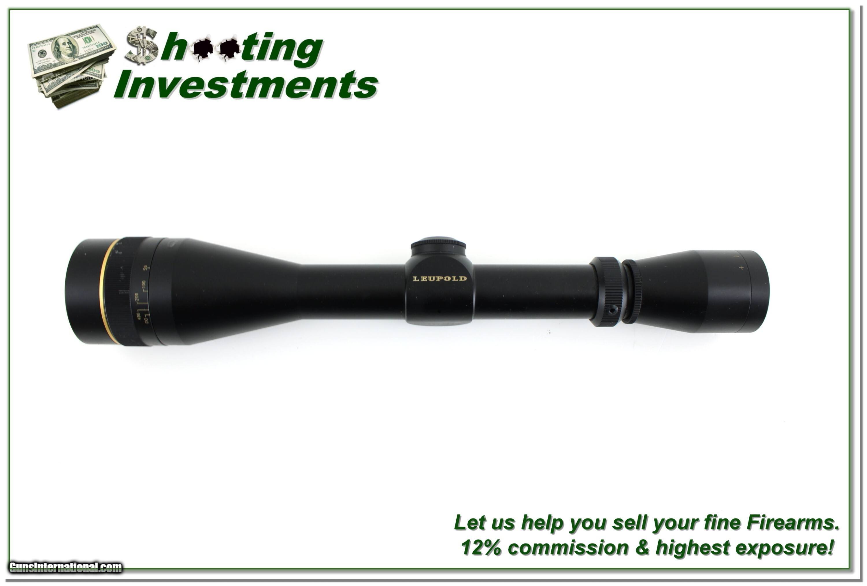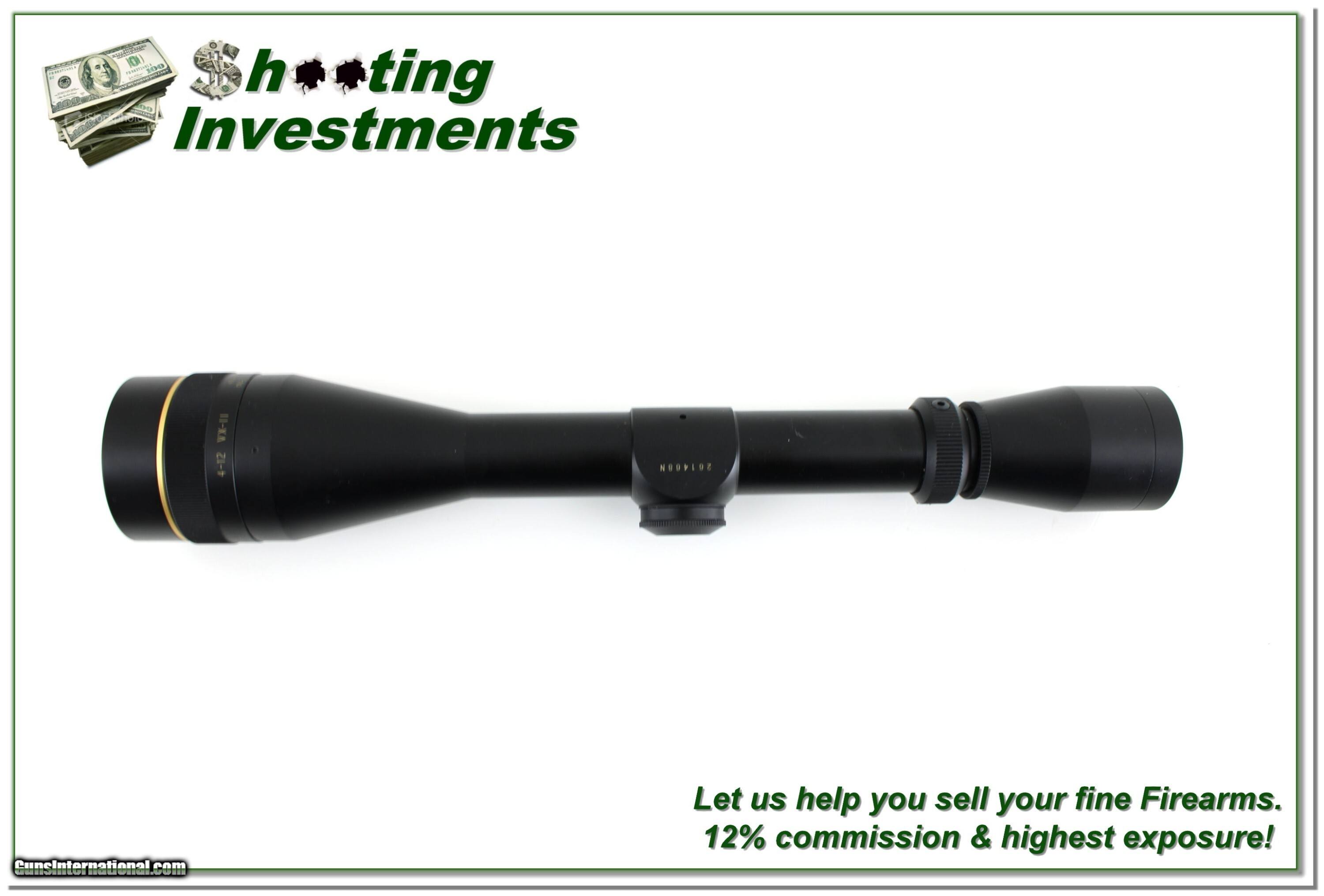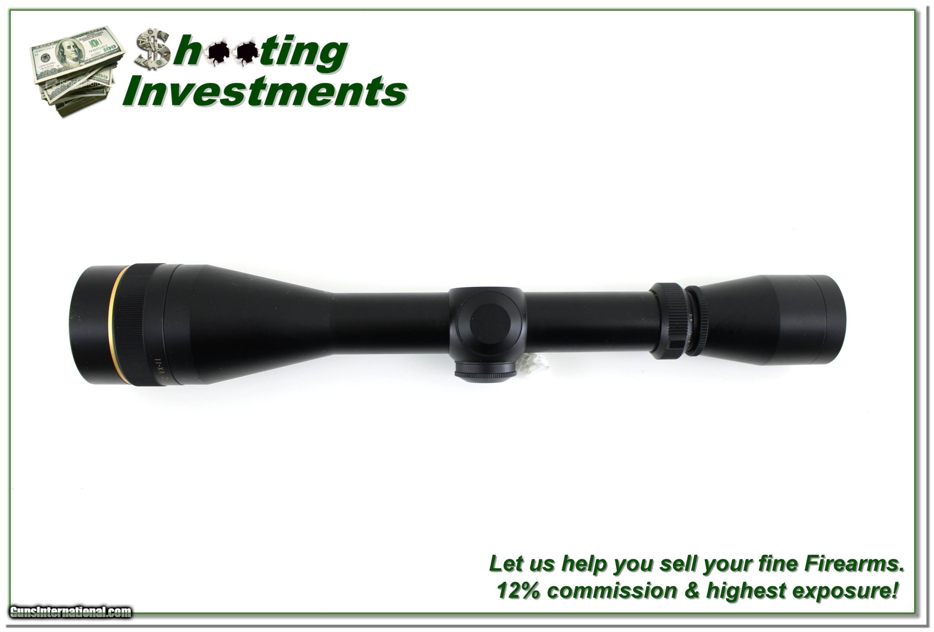 Description: This is an excellent condition Leupold VX II rifle scope in 4-12 Power with AO. It is matte finished with crystal clear optics and duplex crosshair. Aside from one mark the scope looks new. Shipping is $14.95 and please email me with any questions or larger pictures. (Consign your quality firearms with Shooting Investments for only 12%! Let me know if you have any you would like to sell!) 25-1480s Payment: Payment is by Money Order, Cashier’s Check or Personal Check. I can now also accept Credit Cards (MasterCard, Visa, Discover & American Express) with a 3% convenience fee. Shipping: The shipping charge will be listed in each description. It is $49 for most firearms. Some heavy guns or those insured for over $2000 will be higher. Shipments to Alaska and Hawaii are higher because air shipment is required. Most firearms are shipped on Tuesday and Thursday and usually in 5 days of receipt of payment. We package all shipments carefully and insure them. Optics are shipped Priority Mail and most other non-firearm shipments are shipped First Class. Returns: Our return policy is simple. If for any reason you are not pleased with your purchase, you may return your item for a full refund of purchase price. Ammunition cannot be returned. It is important to us that you are happy. Guns cannot be fired or dissembled before returning them and they must be returned in the same condition as received. Notification of a return must occur within 3 days of receipt at your dealer. Shipping, convenience and dealer fees are not refundable and are the responsibility of the buyer. Lay-a-way: If needed, we offer a 60 day lay-a-way option on most firearms. It is 1/3 now, 1/3 in 30 days and 1/3 in 60 days. Lay-a-way firearm sales are final and cannot be returned. If a lay-a-way is not completed the first payment cannot be refunded. Consigning your firearms with Shooting Investments: We will help you get top dollar for your firearms. While most local guns shops charge 20% or more, our fee is only 12% with a minimum of $100. At your local gun shop it might take months to sell. Selling on-line provides instant access to thousands of interested buyers. You won’t find any other on-line dealer willing to sell your firearms for only 12% or listing every gun on 3 separate s. Selling through an House typically costs the seller 15% and the buyer an addition 15% (so 30%) and you have to wait several months to sell and longer to receive funds. If properly priced, we will sell your firearms within a few weeks. Send us an email or give us a call and we’ll explain how easy it is for you to get top dollar. Trading: Trading for us is really just buying your gun to re-sell. If you have a gun you want to trade, please email a picture and we will let you know what we can give for it. You will always get more if we sell it for you on consignment. Price: $349.00 Contact Seller |