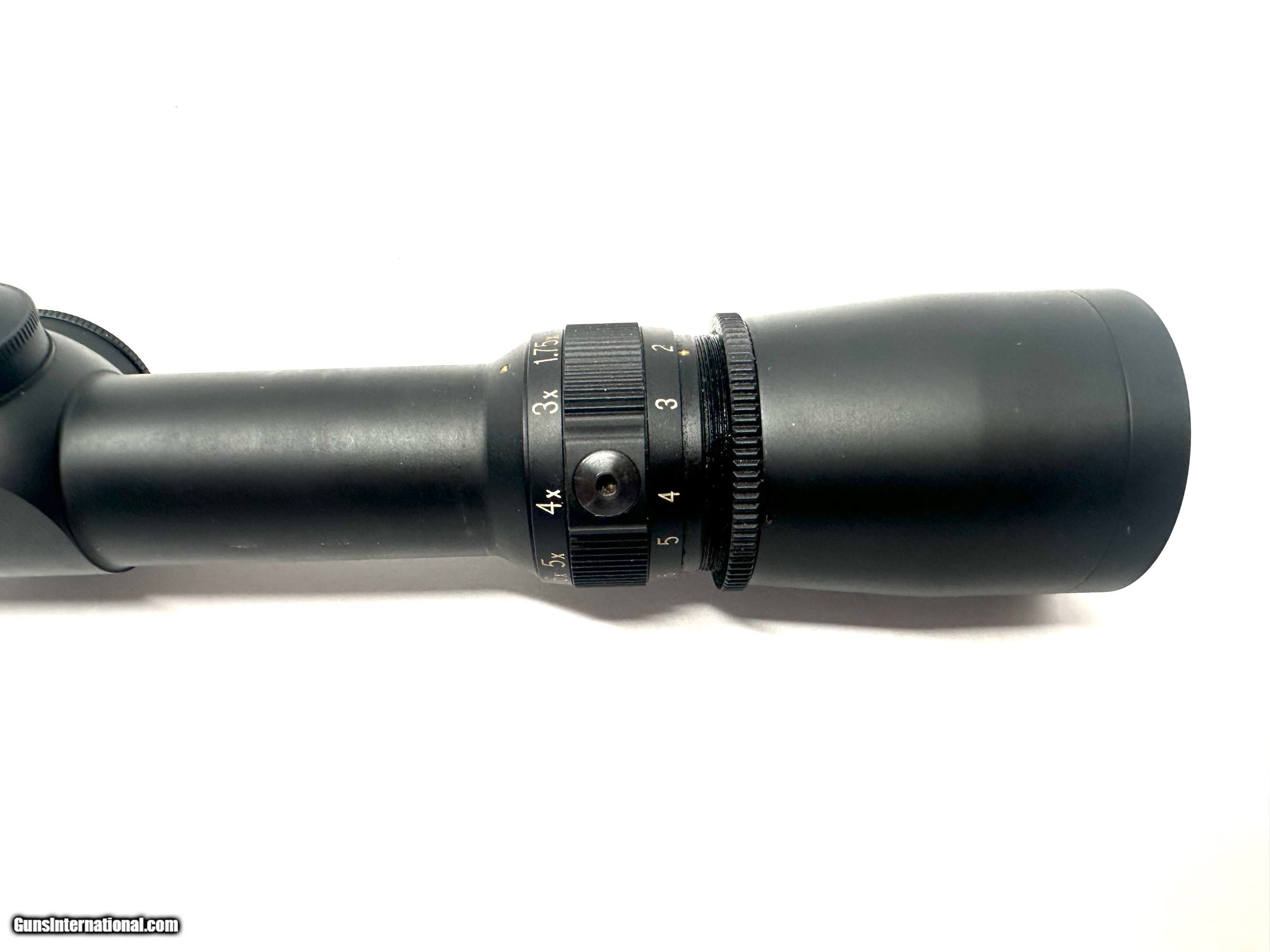 Description: No Longer available from Leopold this VX III in 1.75 x 6 power scope is perfect for your brush gun or quick target acquisition situations. It has a 32mm front objective making this great for dusk with higher light collecting abilities than a straight 1" tube scope commonly found in this magnification range. THis scope is like new with the exception of some finish scraping where the original rings were attached under the scope. the tube it not dented or crimped where the original rings were. A great scope overall that you cannot get in this compact package any more. Over all length is 9-7/8" with a 1" tube Weighs 10.9 oz, Duplex Reticle NO Shipping or Credit card Fees SOLD |