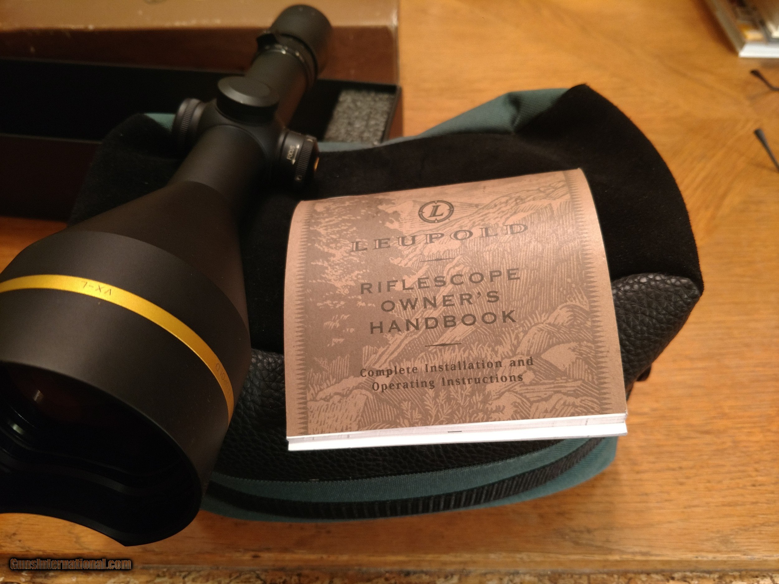 Description: LEUPOLD VX-L 4.5-14X56MM LR long range rifle scope (serial number 206530T), in original factory serial numbered box with scope cover and detailed owner's manual. Scope is in pristine original condition: no scratches, no blemishes, no excuses! The scope length is 12 3/4" and comes, of course, with 30MM tube, Boone and Crockett reticle w/BDC, Diamond coat index matched lens system, titanium nitride coating w/matte finish, side focus parallax adjustment PLUS LEUPOLD FULL LIFETIME GUARANTEE. This is a real gem that will last a lifetime! The price is $1250 including shipping to your home or office. Call or text me at 318-780-4242 if y are intererested. SOLD, CHECK ON ITS WAY! SOLD |