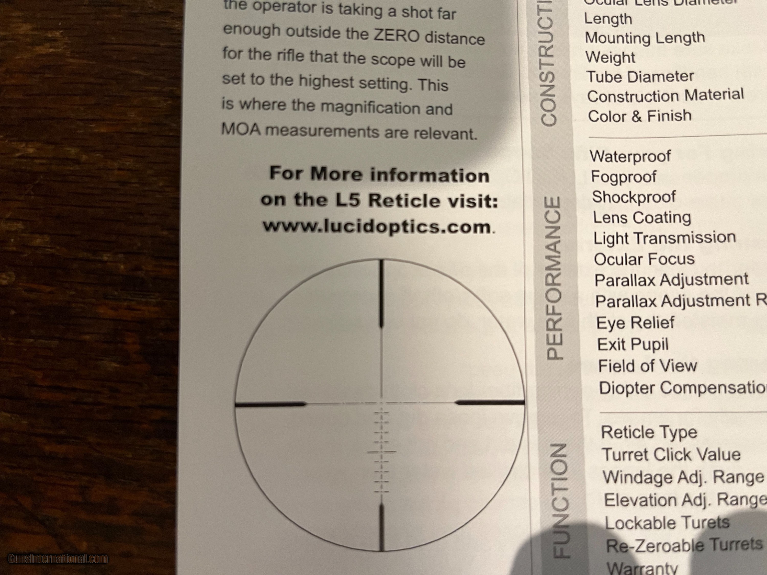 Description: BNIB Lucid 6X24X50 30mm scope. MSR $638, Optics Planet sale price $442. Still in factory box. Never mounted. Matte finish. AO. Picture of Reticule. FREE SHIPPING SOLD |