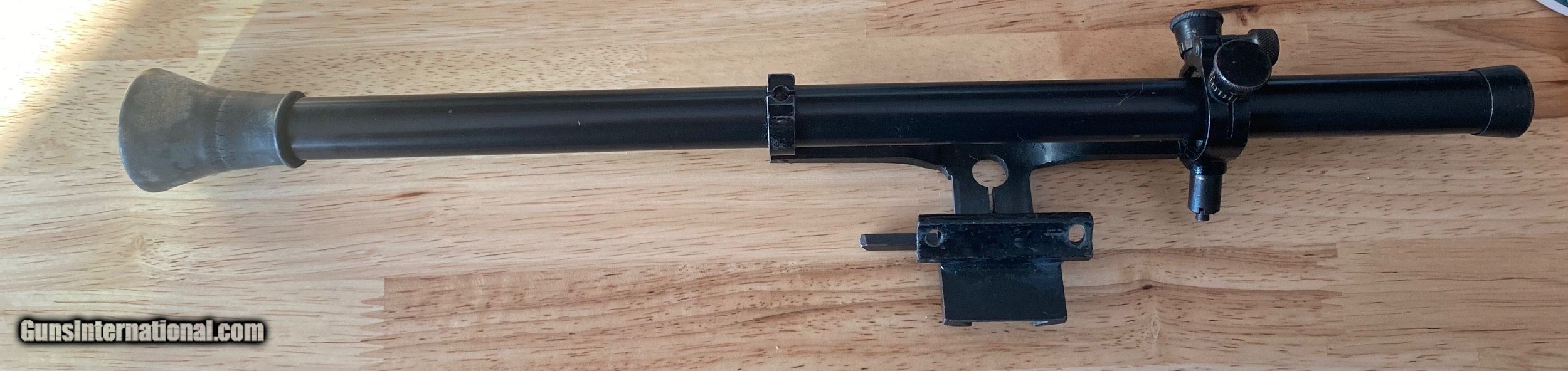 Description: Mossberg scope with no. 6 mount, in good shape for the age. Glass is pretty clear as well. Original eyepiece still attached. Buyer pays shipping. SOLD |