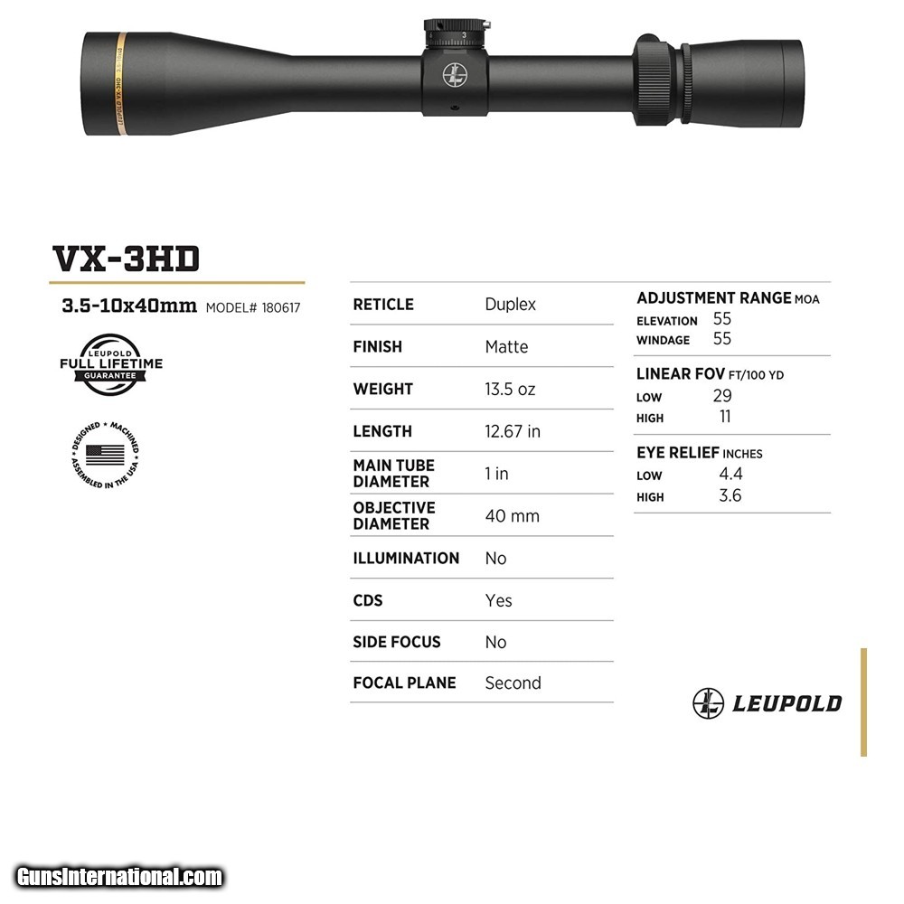 NEW IN BOX Leupold Gold Ring VX-3HD 3.5-10x40mm Matte Finish Rifle Scope with Duplex CDS-ZL 180617