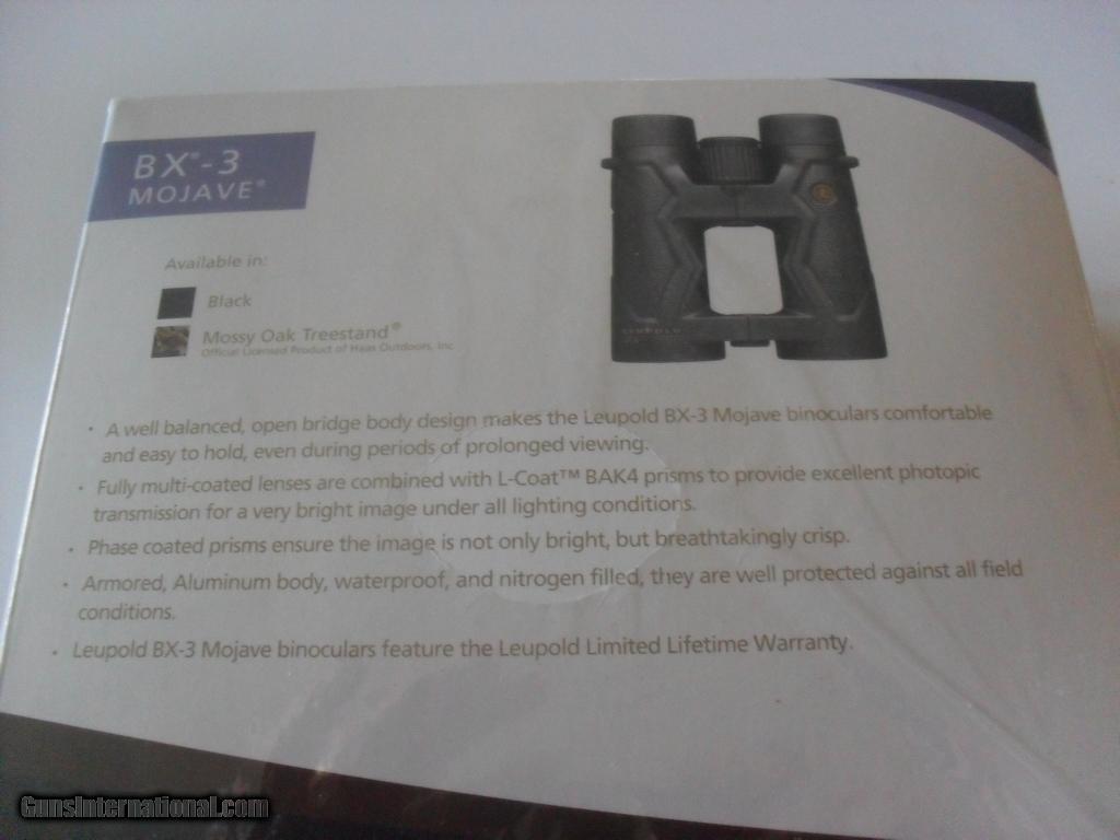 Description: Description The Leupold BX-3 Mojave Binoculars feature and open bridge design that cuts excess weight and offers better comfort in hand, particularly for periods of prolonged viewing. They provide superior optical performance combined with an ergonomical design. Regularly priced at $469 plus tax. A USPS money order for $420 brings them to you.Regular store price $449 Product Identifiers BrandLeupold ModelBX-3 Mojave 10x50 Mossy Oak MPN111771 UPC030317117719 Features: - Open bridge, roof prism design is extremely lightweight and ergonomic. - Extremely smooth focusing system for fine adjustments. - With a wider field of view than competitive models BX-3 Mojave binoculars make it easier to follow movement. - Cold Mirror Coated Prisms - The fully multi-coated lenses are combined with L-Coat™ BAK4 prisms to provide excellent photopic transmission for a clear, bright image under any condition. - Cold Mirror Coated Prism technology improves the reflectiveness of the prisms for even greater color reproduction, resolution and clarity. - Twist-up eyecups and generous eye relief for comfortable extended viewing. - Armor coated, rugged, and waterproof. - Covered by the Leupold® Limited Lifetime Warranty. - Mossy Oak Treestand Specifications: - Actual Magnification: 12x - Linear Field of View (ft/1000 yd): 220 - Linear Field of View (m/1000 m): 77 - Angular Field of View (degrees): 4.2 - Weight: 28.2 oz / 800 g - Length: 6.6 in / 167 mm - Obj. Aperture (mm): 50 - Twilight Factor: 20.4 - Exit Pupil (mm): 4.2 - Eye Relief (mm): 17.0 - Interpupillary Distance (mm): 58 - 74 - Close Focus Distance: 9.9 ft / 3.0 m BRAND NEW IN BOX SOLD |