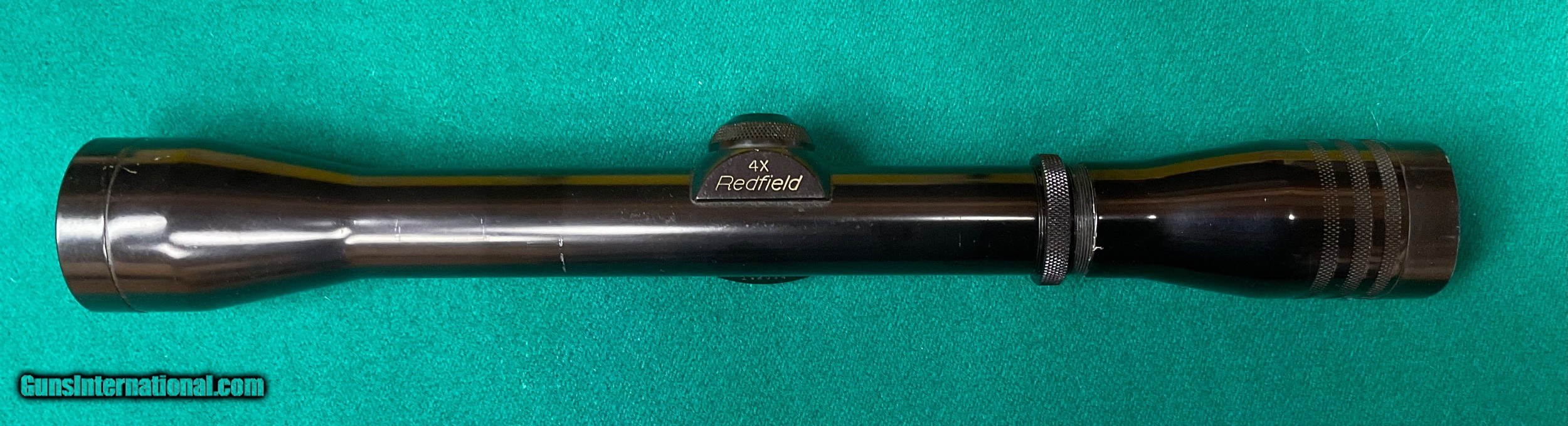 Description: Redfield 4X rifle scope with interesting TV or oblong? Eyepiece. At any rate it's flattened and not round. Bright and clear optics. $165 includes insured shipping. No credit cards and no trades. SOLD |