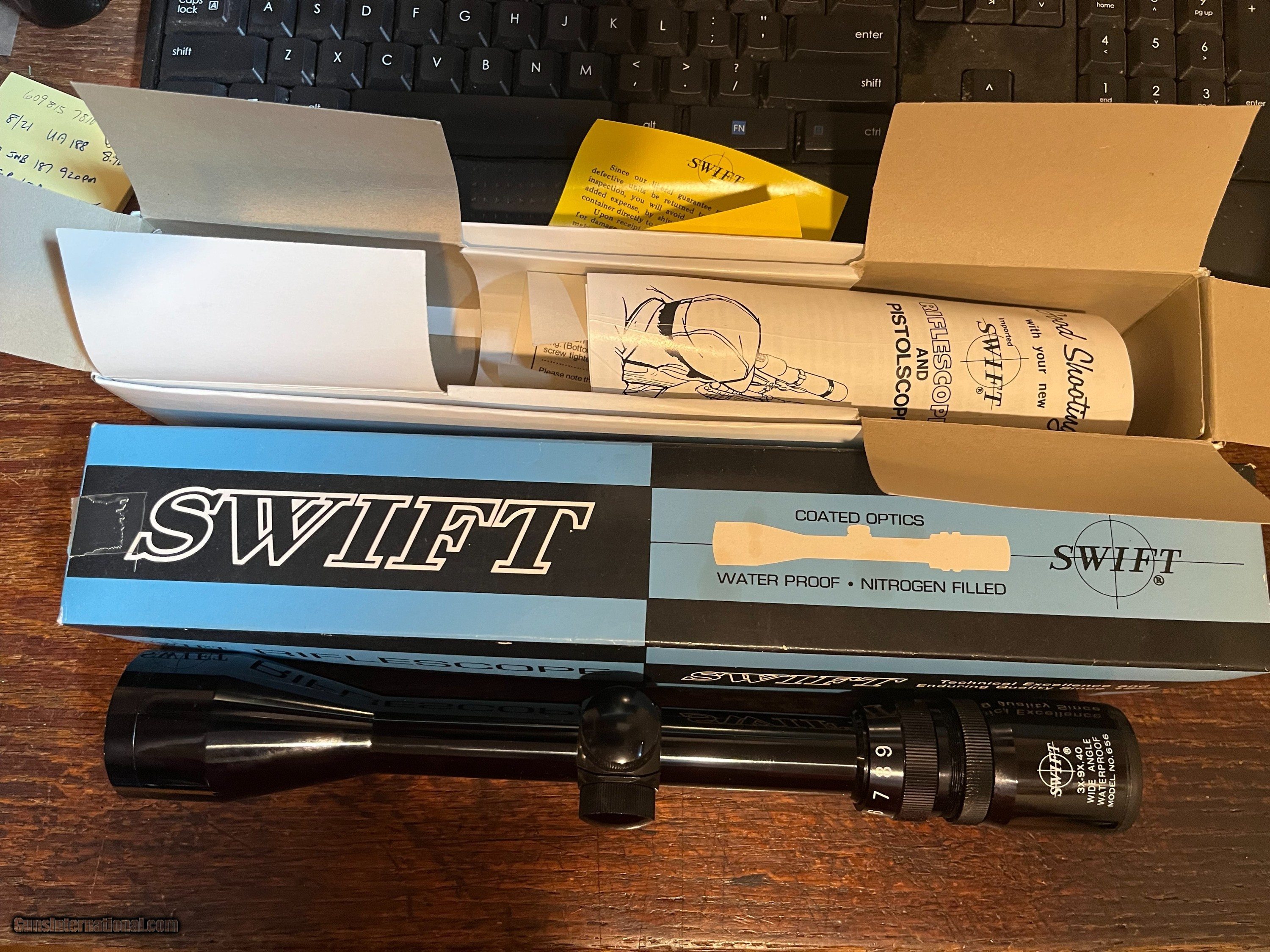 Description: NIB Swift 4X12X40 scope. Model 664 with Parallax adjustment. Includes box and all literature. Late 60s early 70s. SOLD |