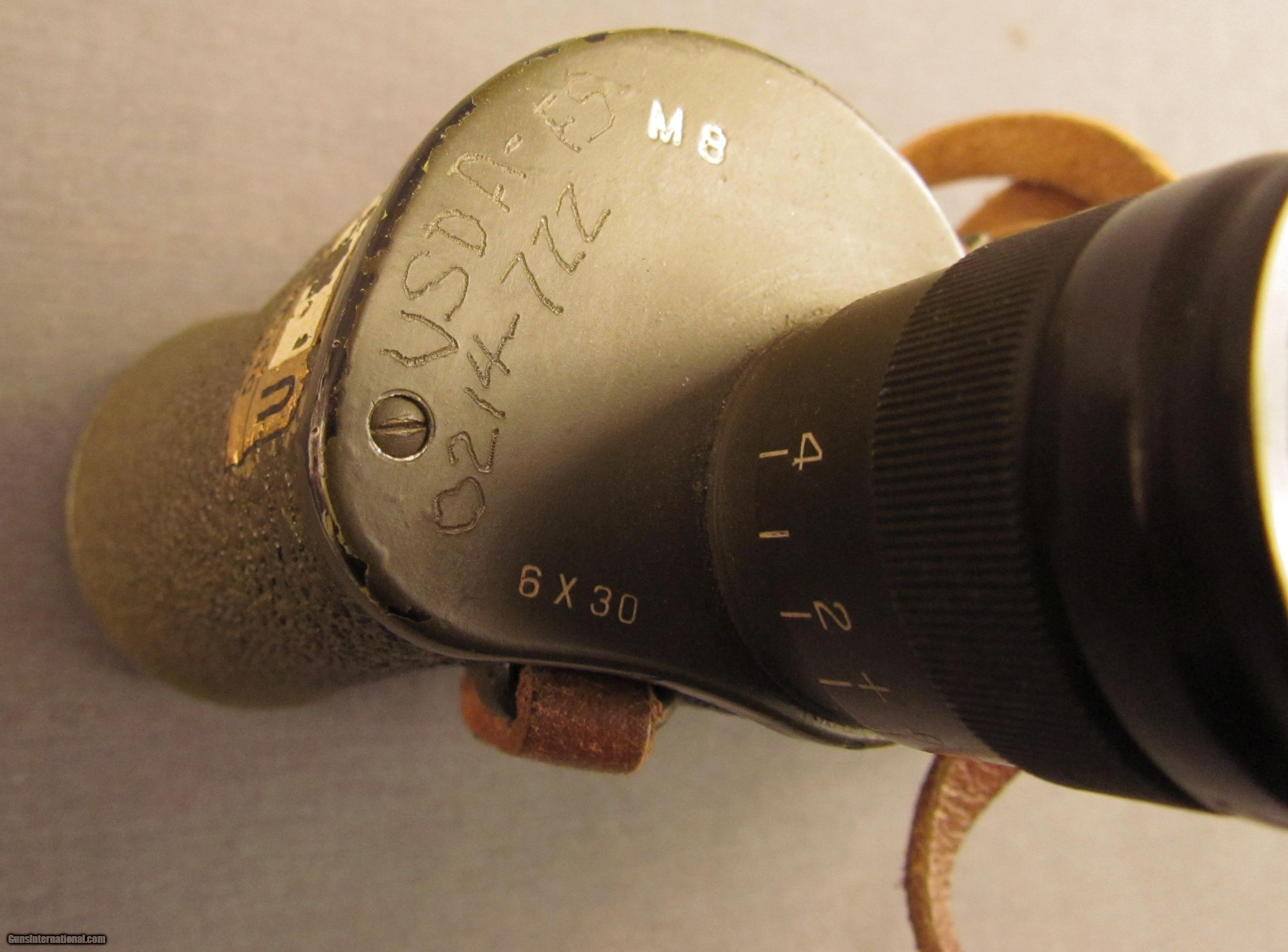 Description: These glasses are marked M8 on the left ocular which also has an internal graph marked on the left side M8/6 X 30 with scratched "U.S.A." Serial No. U.T. 995 with an olive drab exterior color. In a brown leather carry case marked "Case, Carrying, M. 17" and no "D4460." The case has a "lift the dot" fastener and a leather shoulder strap which is separated. Under the olive paint above the maker's name is "U.S. Army SN 2921 and R.L.B.", probably a WWII US army issue and later transferred to the US Dept of Agriculture. The remnants of a decal says Forrest Service. Clear crisp optics. SOLD Manufacturer: B&L Model: Binoculars Serial Number: UT995 |