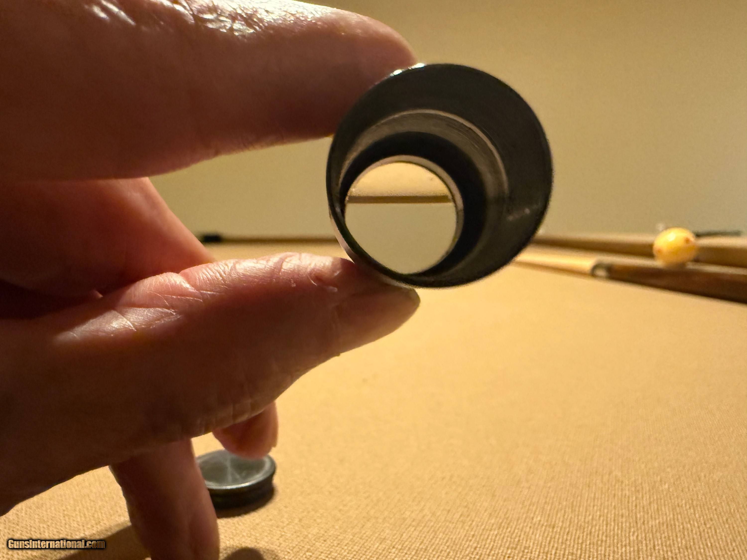 Description: J. Unertl icreasing eyepiece for 3/4" tube scopes. These are hard to find and it will fit the 1", 1.25" and 1.5" target models. It will increase magnification by approximately 25%. It is in very good condition with minor freckling. The glass is clear with no issues and the eyepiece has front and rear end caps. Shipping is $10 SOLD |