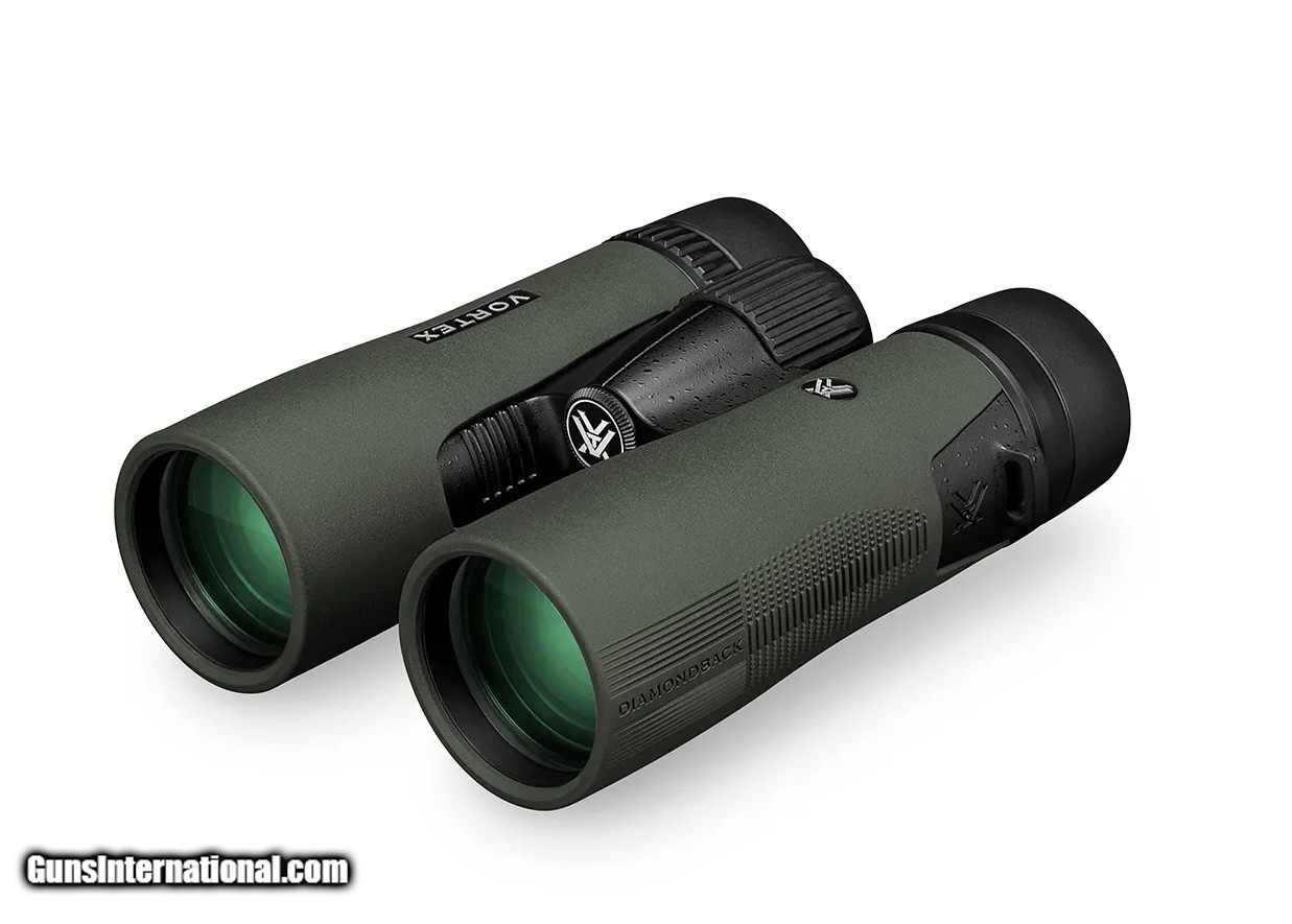 Description: Manufacturer: Vortex Model: Diamondback HD 10x42 Binoculars Finish: Black and Green SKU: DB-215 Magnification: 10x Objective: 42mm Eye Relief: 15mm Field-of-View (ft 1000yd): 330 Angular Field of View (degrees): 6.3 Weight: 21.3 oz Included in Box: