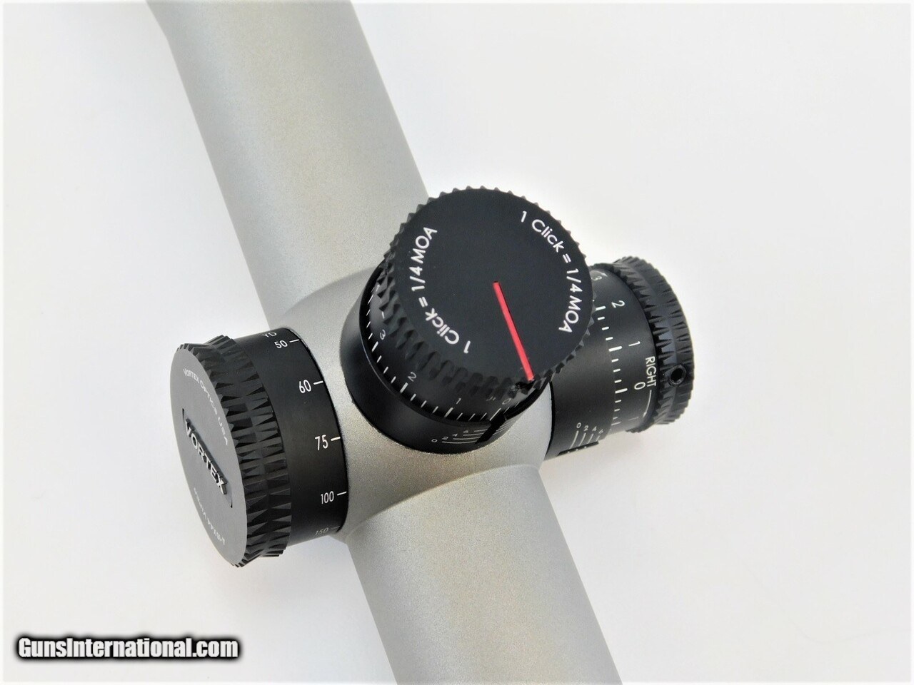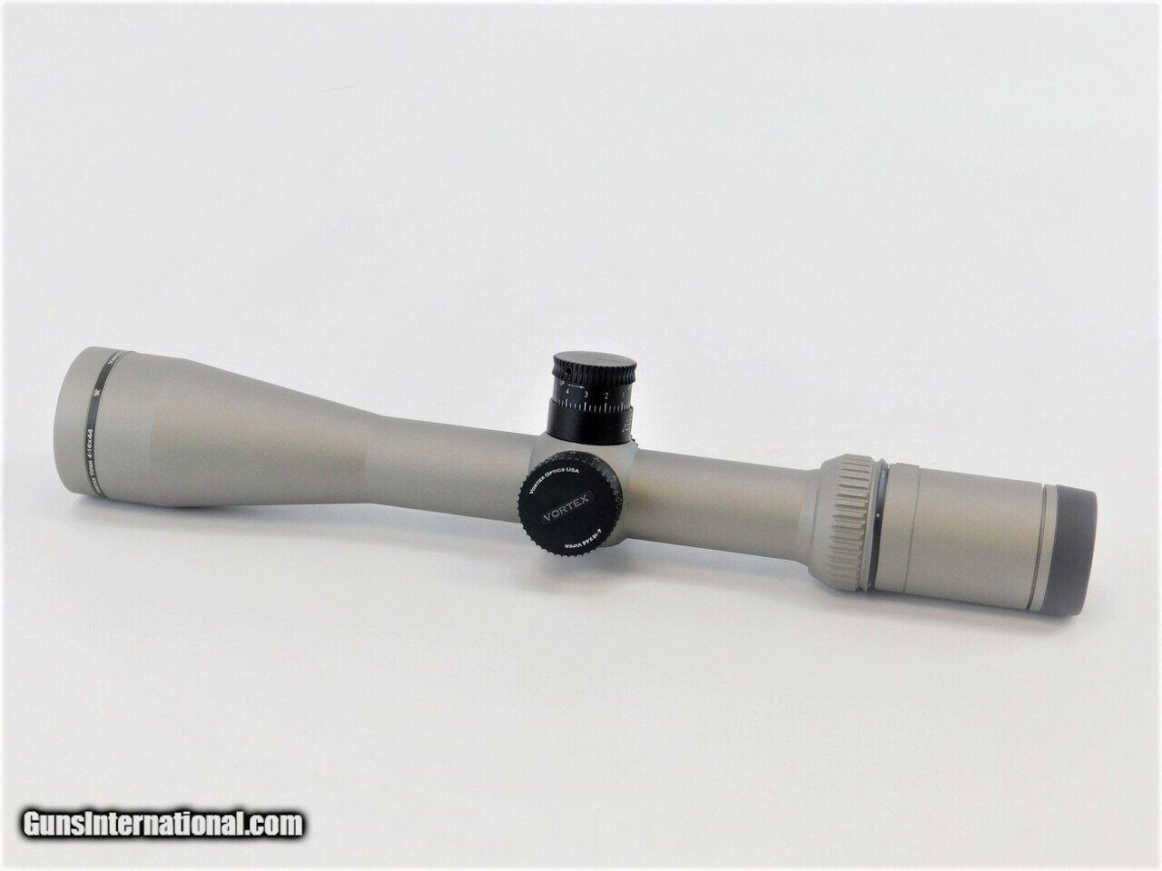Description: Manufacturer: Vortex Optics Model: VIPER HS-T 4-16x44mm Finish: Titanium Cerakote SKU: VHS-4309 TI Reticle: VMR-1 (MOA) Magnification: 4-16X Objective: 44mm Eye Relief: 4.0" Turret Style: Tactical CRS Zero Stop Body/Tube Size: 30mm Overall Length: 13.7" Weight: 20.8 oz This scope features a custom Cerakote finish that has been applied by US CERAKOTE, our local trained and certified Cerakote technicians. Cerakote is a ceramic and polymer based proprietary formulation that offers industry leading durability, hardness, scratch resistance, corrosion resistance, flexibility, heat and chemical resistance. For additional information on US CERAKOTE click on their name above. Tree stands to mountain tops, bolt guns to ARs, the Viper HS-T is ideal for a wide range of shooting applications. Blending many of the best features from Vortex's incredibly popular Viper PST and Viper HS riflescopes, the Viper HS-T (Hunting Shooting Tactical) riflescope is built on an ultra-strong 30mm one-piece machined aluminum tube to deliver increased windage and elevation travel and optimal adjustment. An advanced optical system highlighted with a 4x zoom range provides magnification versatility. A forgiving eye box with increased eye relief gets shooters on target quickly and easily. Incredibly precise, repeatable and durable tactical windage and elevation turrets built specifically for dialing, along with its hashmark-based reticle, top off this highly versatile riflescope’s long-range performance features. SOLD |
