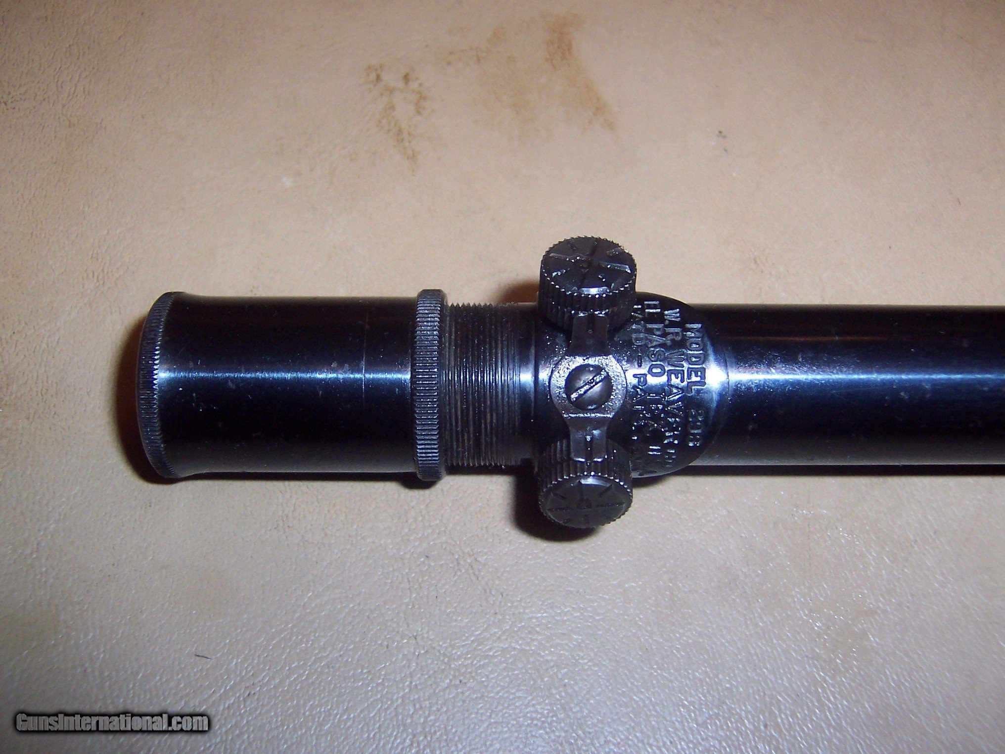 Description: optics may need a little cleaning to be perfect ;;;; but clear enough to hunt with over 98% origina blue with a few freckels that should polish off adjustment knobs work freely tapered single post SOLD |