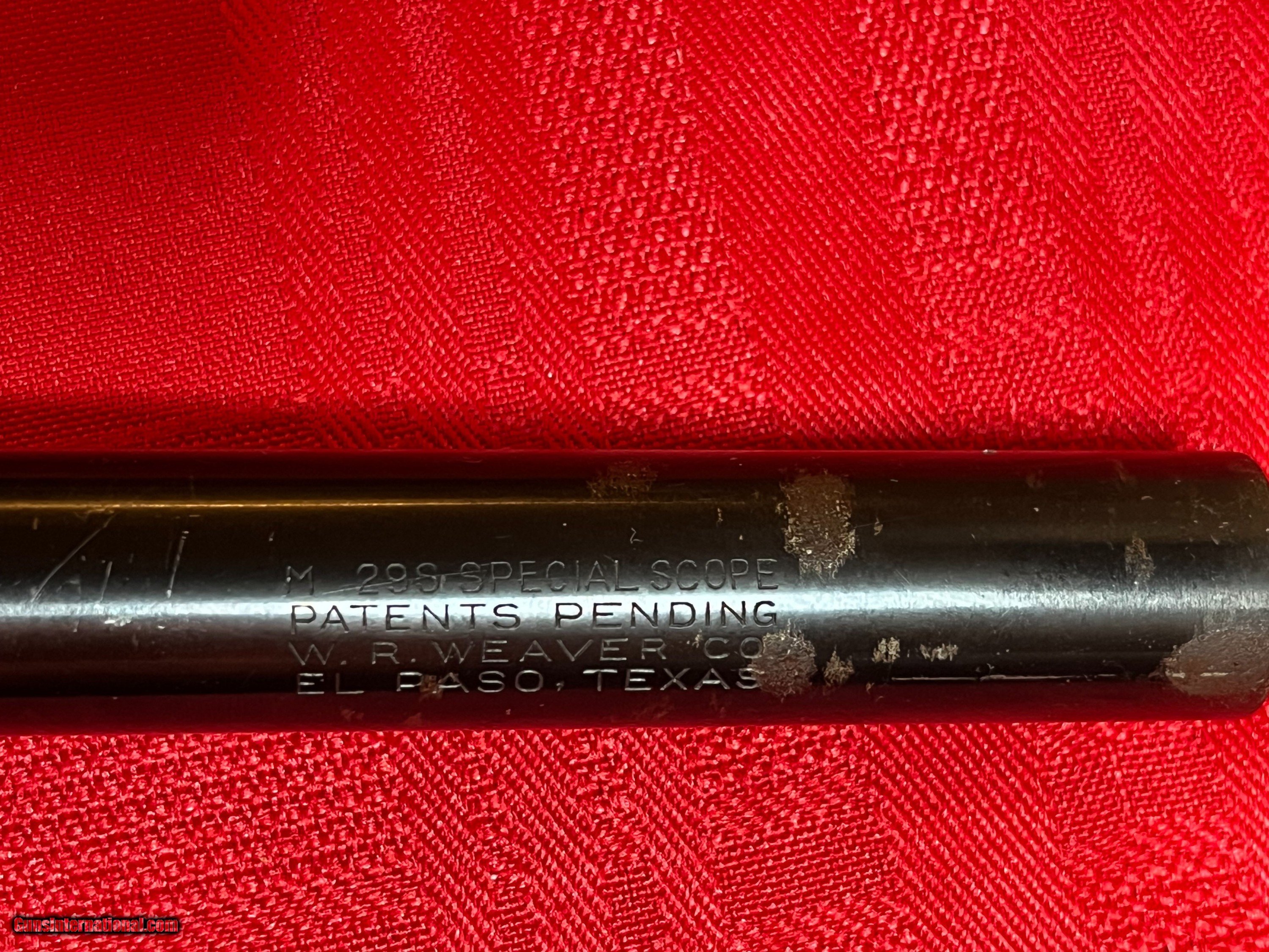 Description: Weaver 29S scope. Cross hair reticle. Clear glass. SOLD |