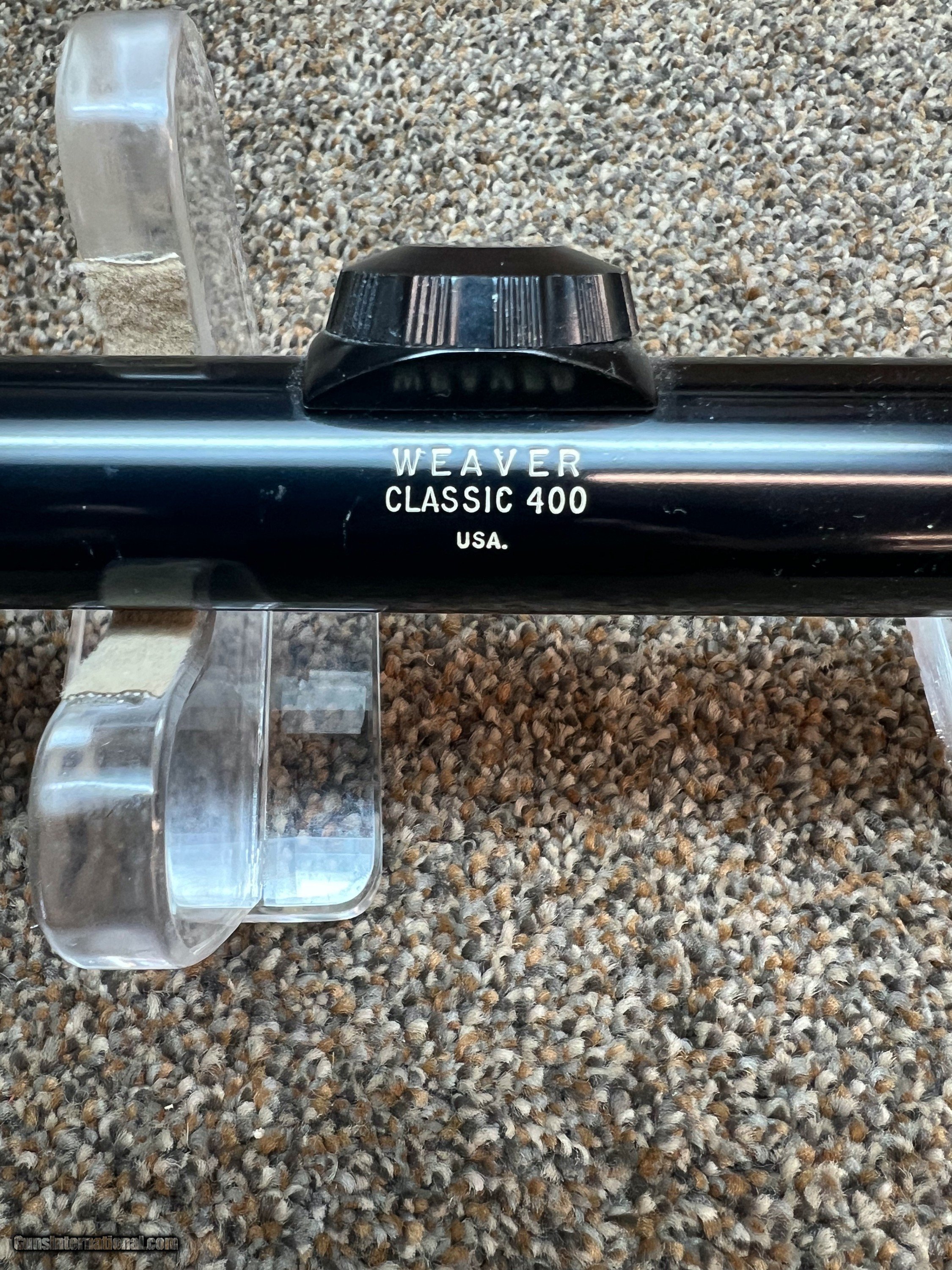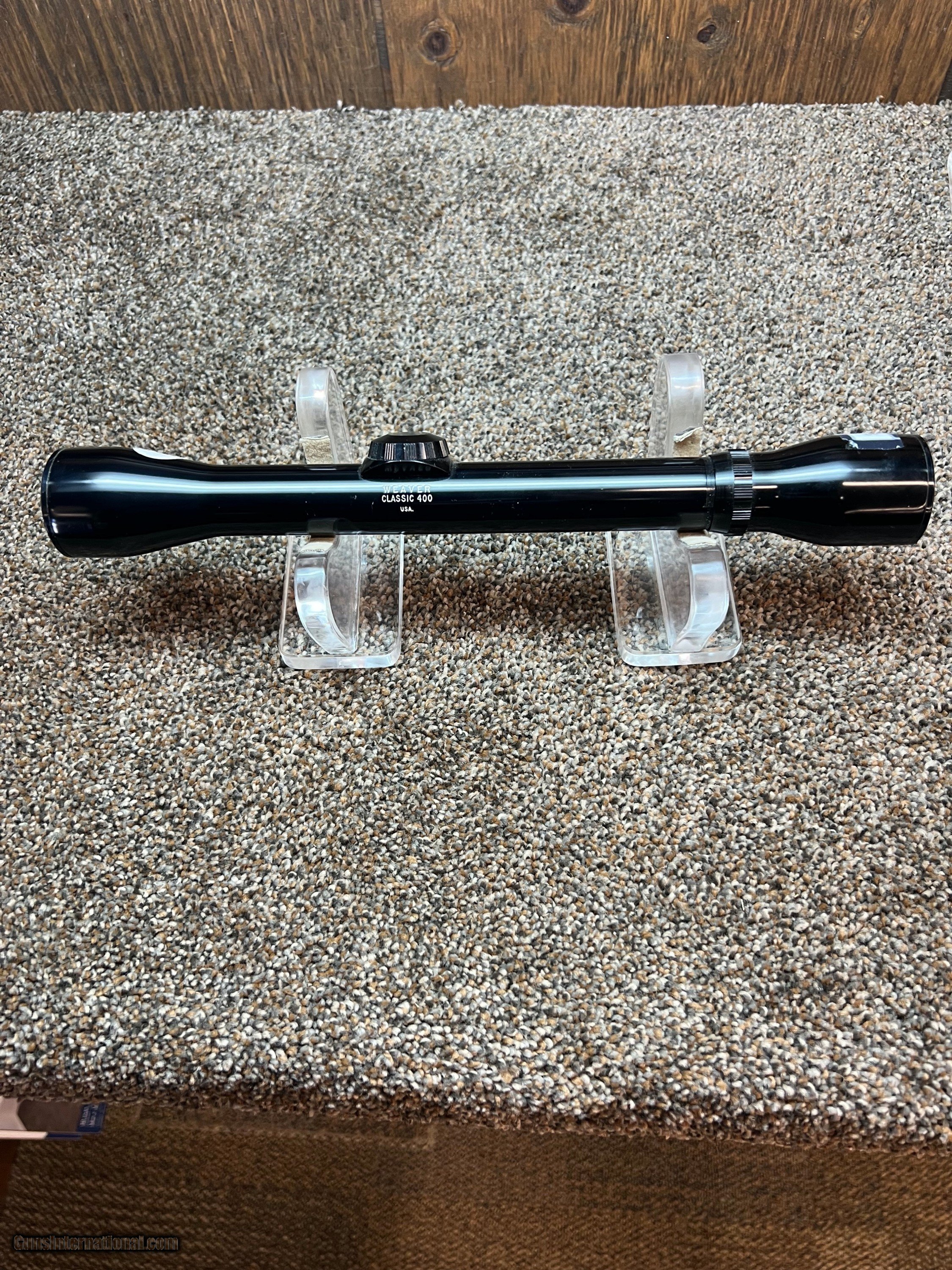 Description: Here's a nice Weaver Classic 400 scope gloss finish with duplex reticle. 20.00 shipping 2.99% credit card payment, PA residents add 6% sales tax. SOLD |