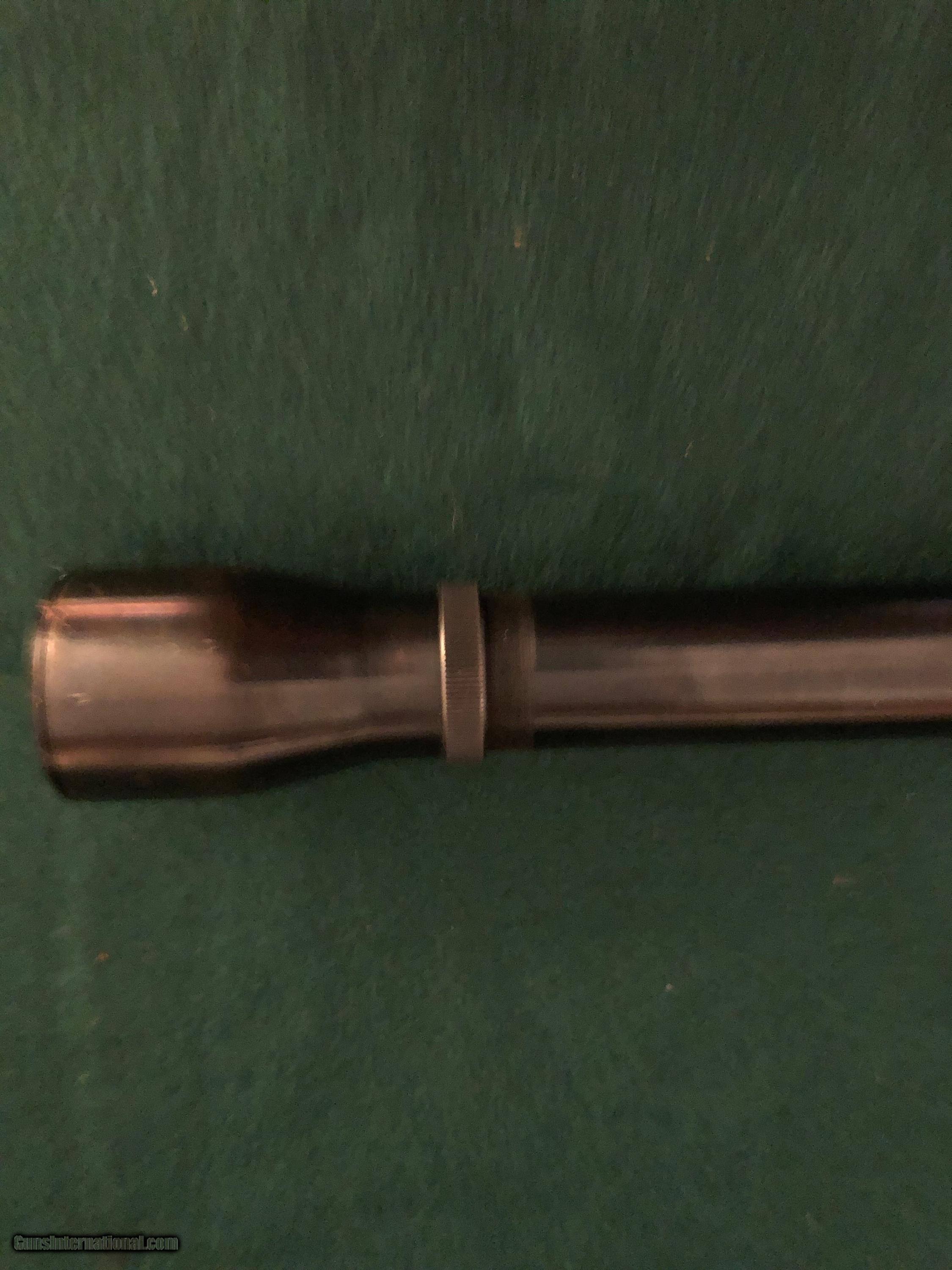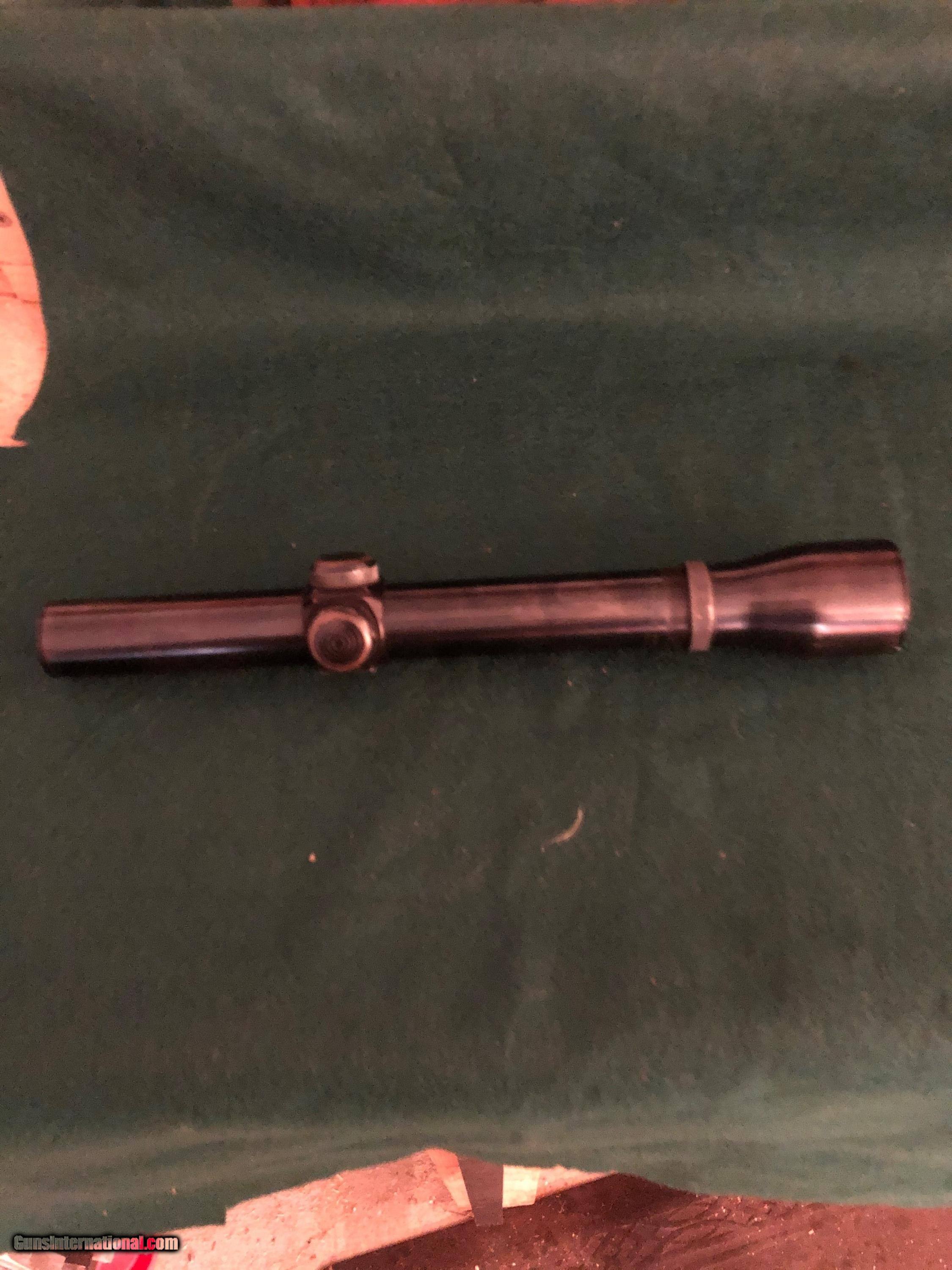 Description: SALE PENDING. Weaver El Paso steel scope. Finish worn on turret knobs and a little on ocular bell (see photos). Optics excellent. Standard fine crosshair reticle. USPS Priority shipping $15. SOLD |