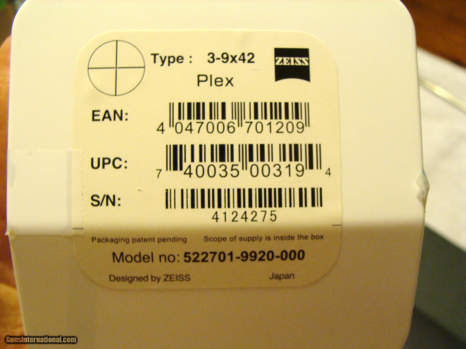 Description: New in box.... Zeiss Terra 3x9x42 with Plex crosshair. These scopes are made in Japan. Free shipping to the lower 48. $325.00 SOLD |