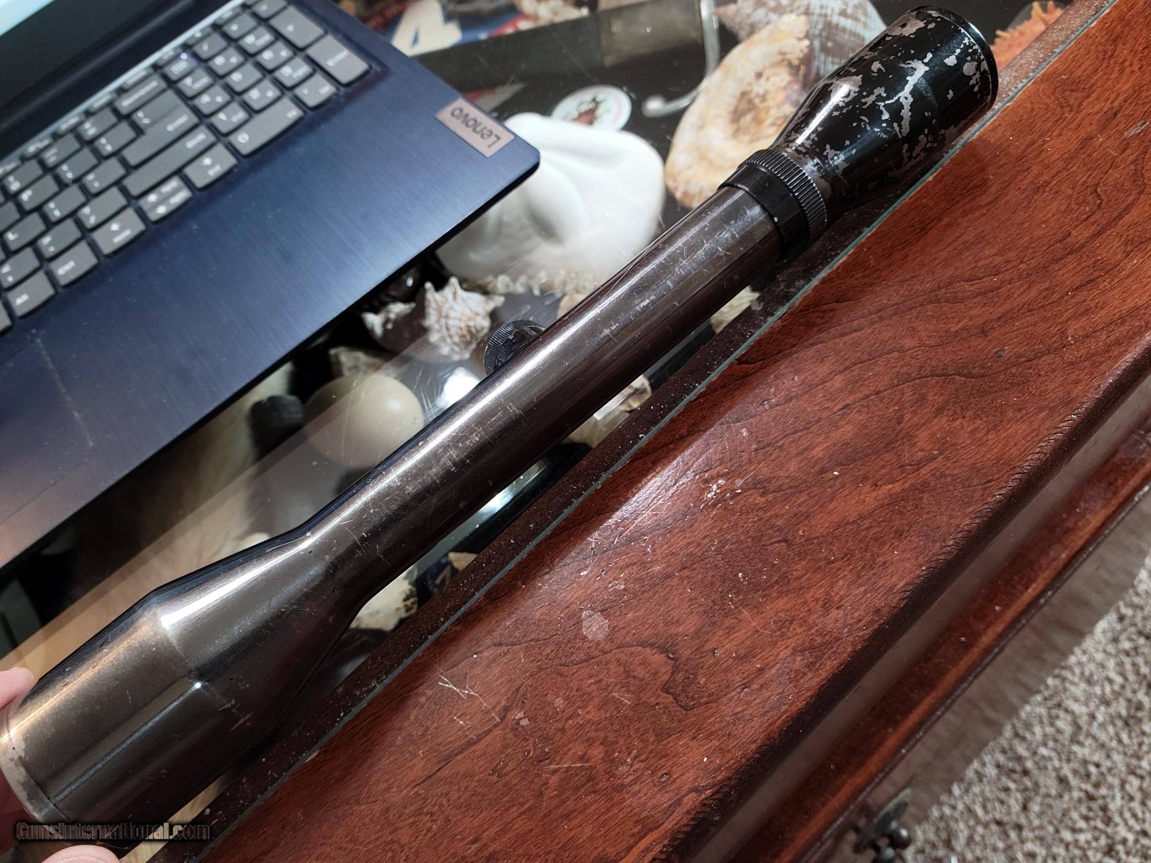 Description: German scope 6x42 with German reticle #1, very clear, some outward wear on the scope but seems to function correctly see pics for outward condition, a good bit of finih wear on this one.optics are now ahzy ,I just tokk that (poor) pic to show the reticle type I have many more German scopes Rumor has it these are made By Schmidt and Bender,also sold under a label Sornet? I have about 4 of these if there is interest $20 shipping to lower 48, questions welcome please see my other scope listings SOLD Rifle Caliber: 6.5x54mm Mannlicher-Schoenauer, 7x57mm Mauser, 6.5x57mmR, 8x57mm JR |