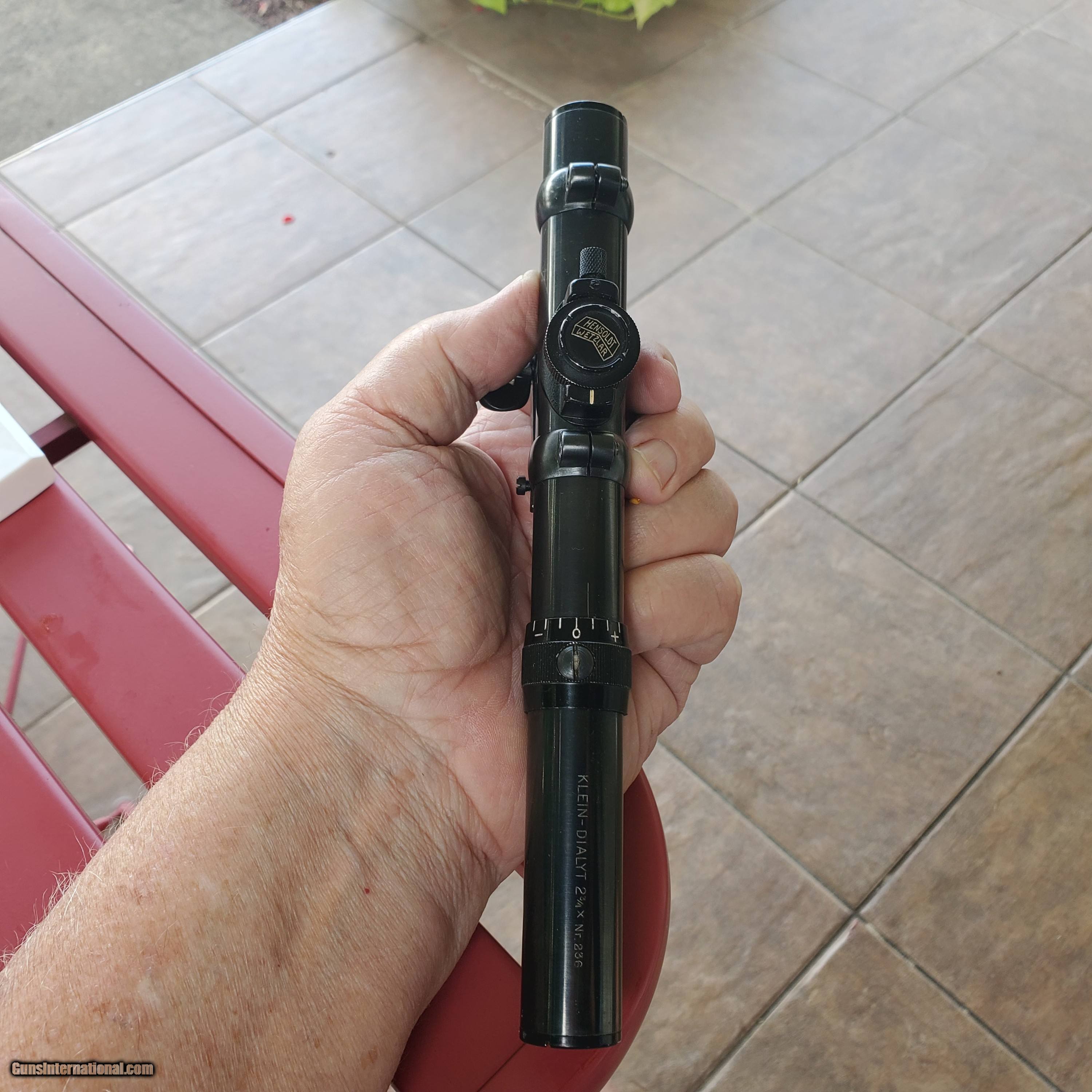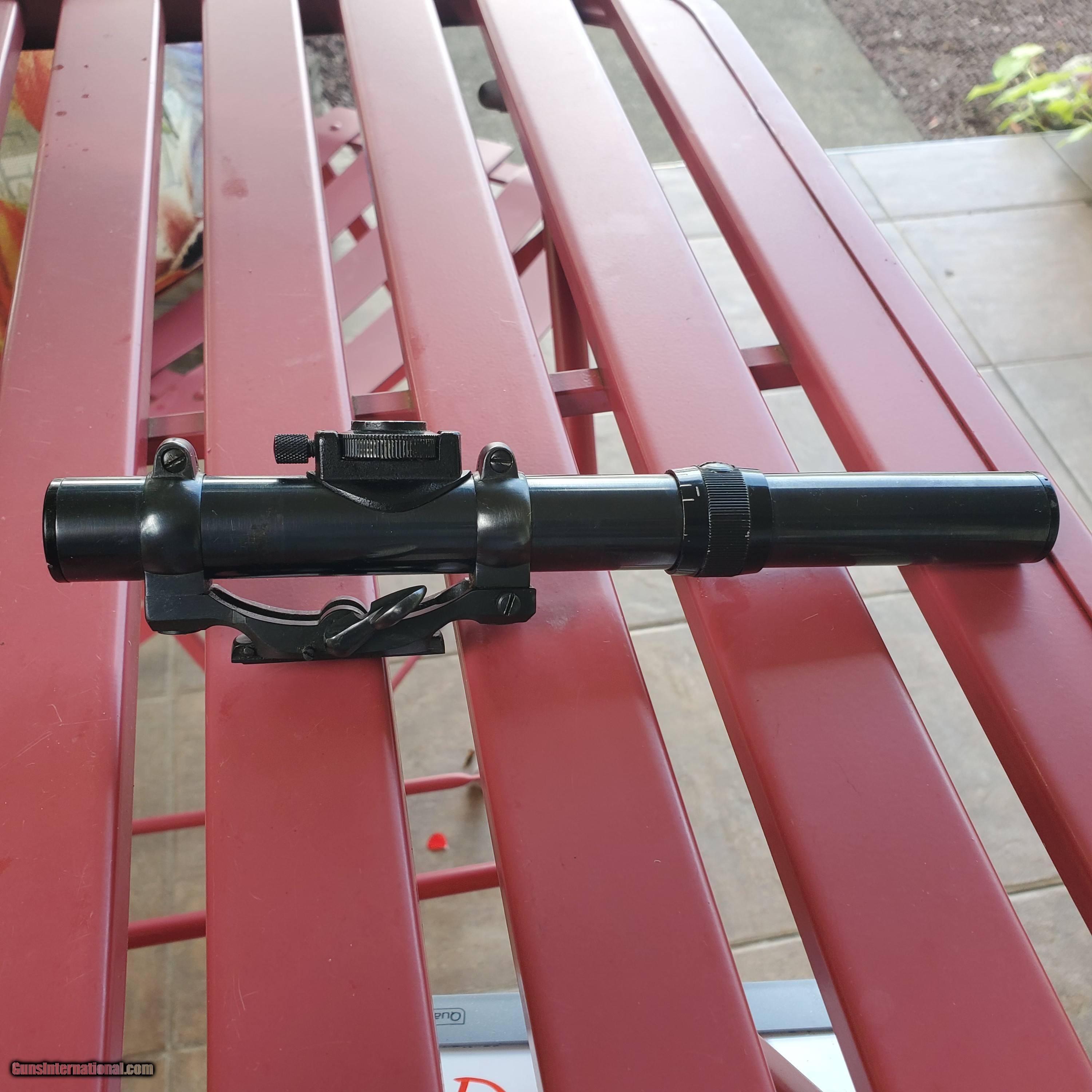 Description: The perfect 22mm scope and mount for vintage 22lr target gun. 3 post clear optics. Mount and base included. SOLD |
