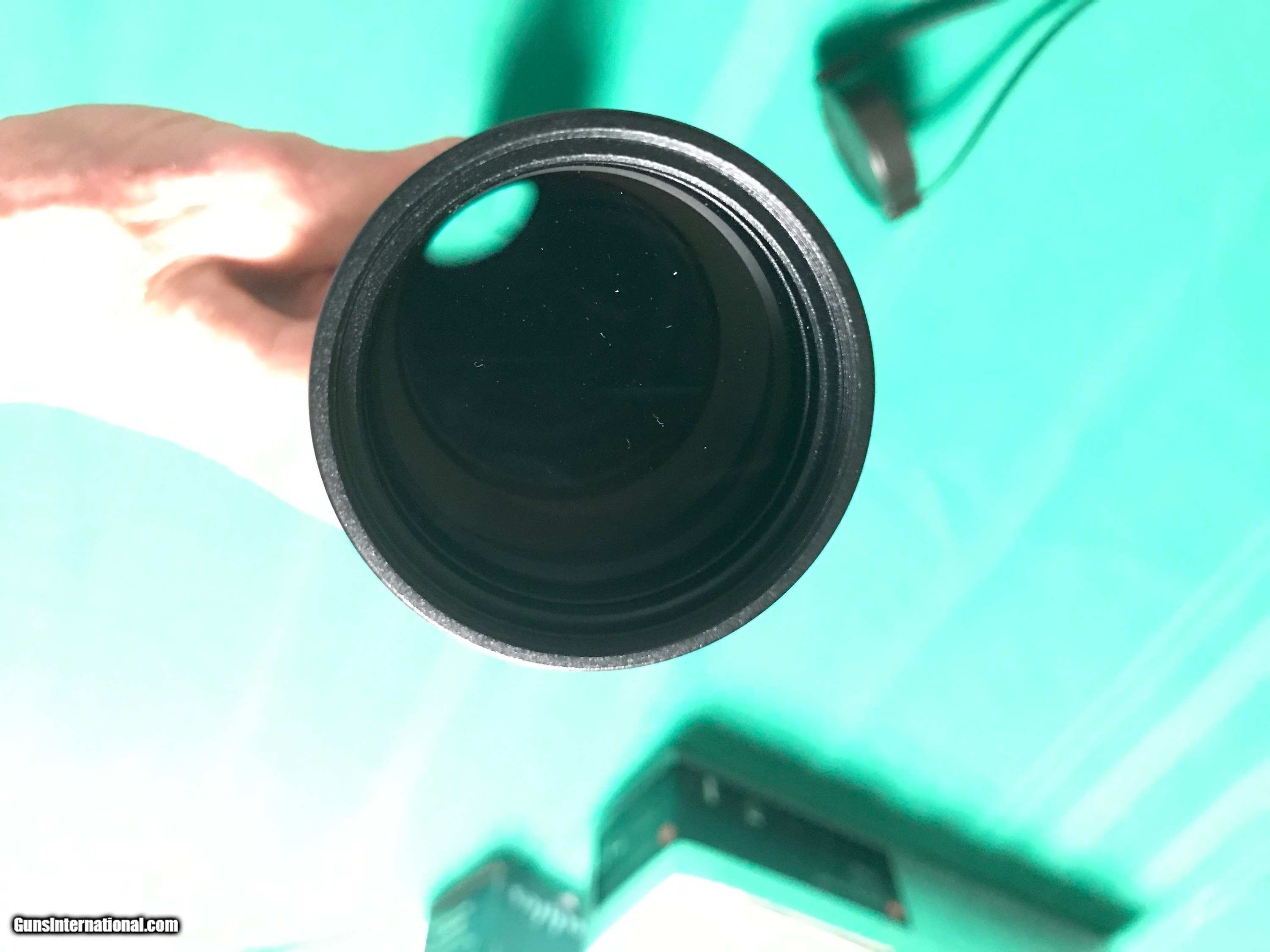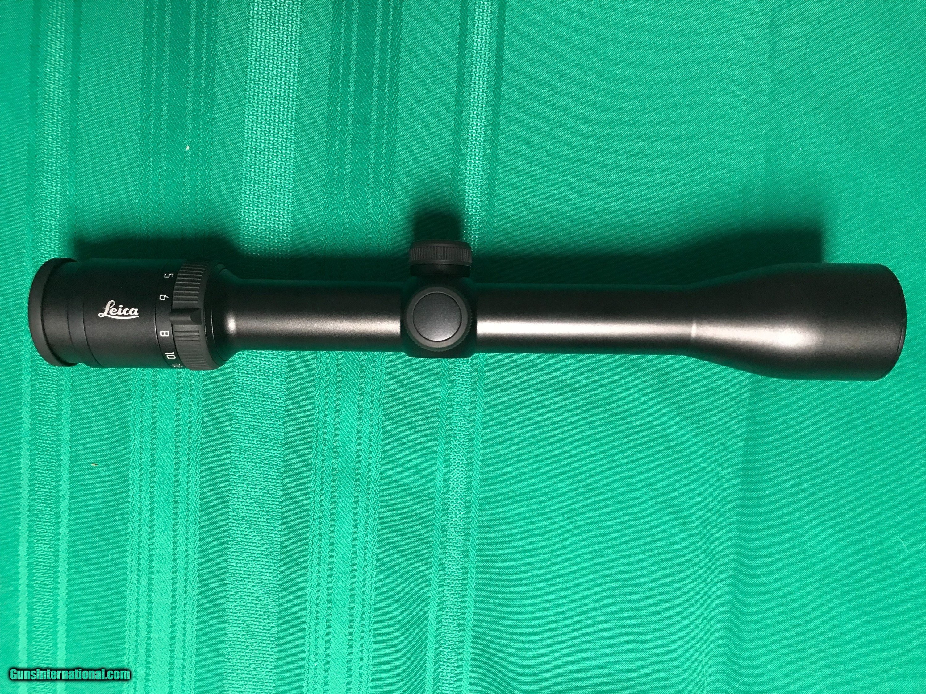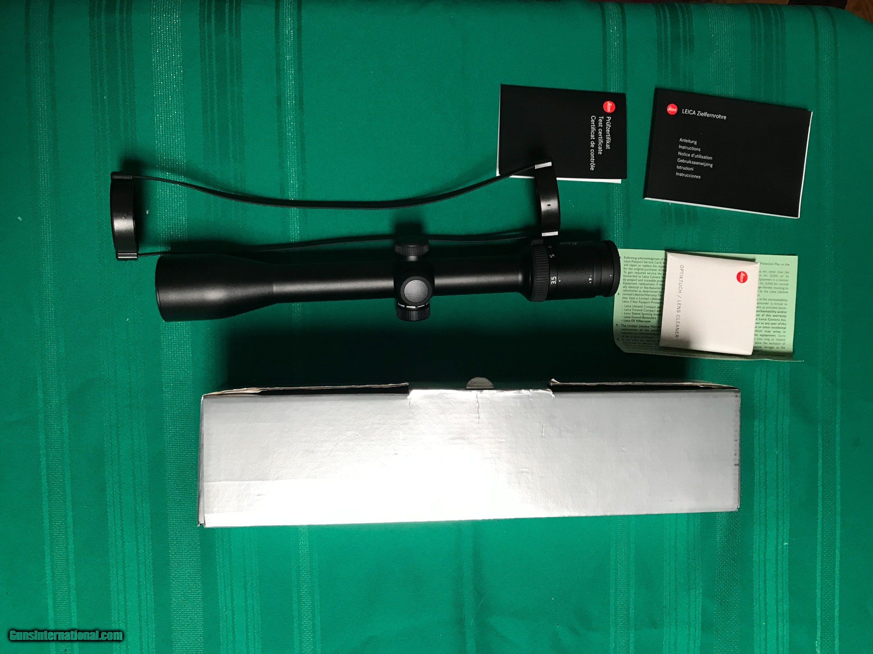 Description: Leica ER 3.5-14x42 is ANIB. I purchased this as a DEMO scope from SWFA several years ago. It has been in my safe from day1. This one has the #1 Reticle as shown on the boxalong with some parallax adjustment . The lens have Leica's Aqua Dura coating. The turrets are 1/4 MOA. I had intended to use this on larger caliber rifles due to the long 30mm mounting tube and the 4' of eye relief. A. SOLD |