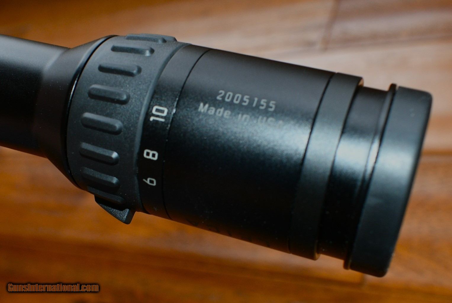 Description: Used scope - Super clean 97%+ Leica ER 5 riflescopes are the perfect match for the American hunter. German engineering creates a high performance scope that focuses on the essentials. Carefully crafted by Leica, precision mechanics, outstanding optical quality, and extraordinary durability are what set the ER 5 apart from the competition. Try it out for yourself! The Leica ER 5 is sure to deliver results every time. Leica ER 5 riflescopes put safety first. The turrets are easily resettable without tools. Safety combines with comfort as the eye relief on the ER 5 is the longest in its class along in addition to a very forgiving exit pupil. The ER 5 will meet the needs of the most demanding hunters. The outstanding optical quality ensures you won't miss any of the necessary details. Features of Leica ER 5 riflescopes include: