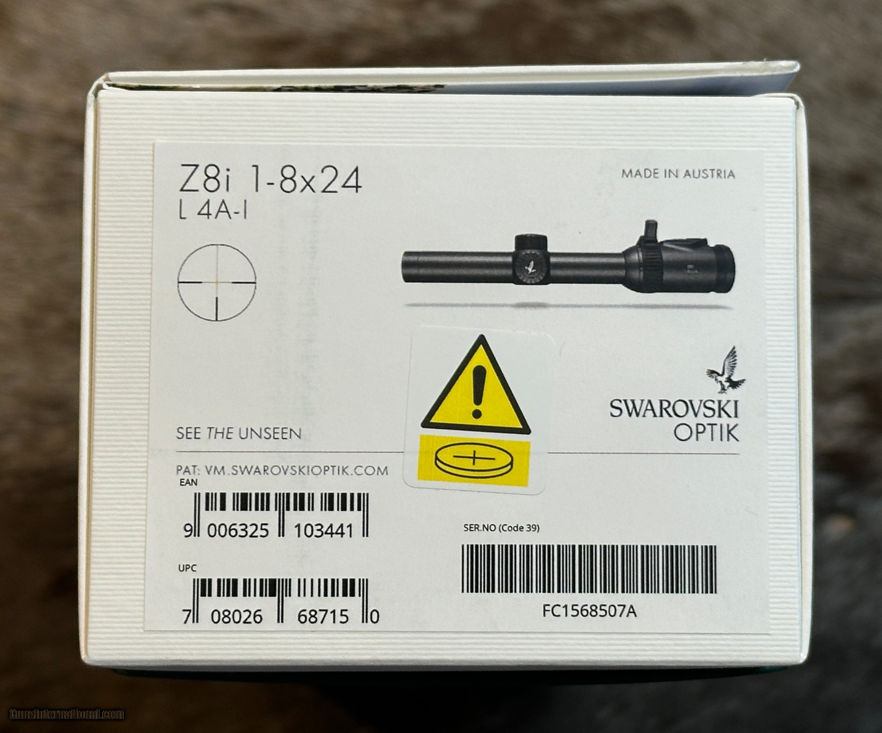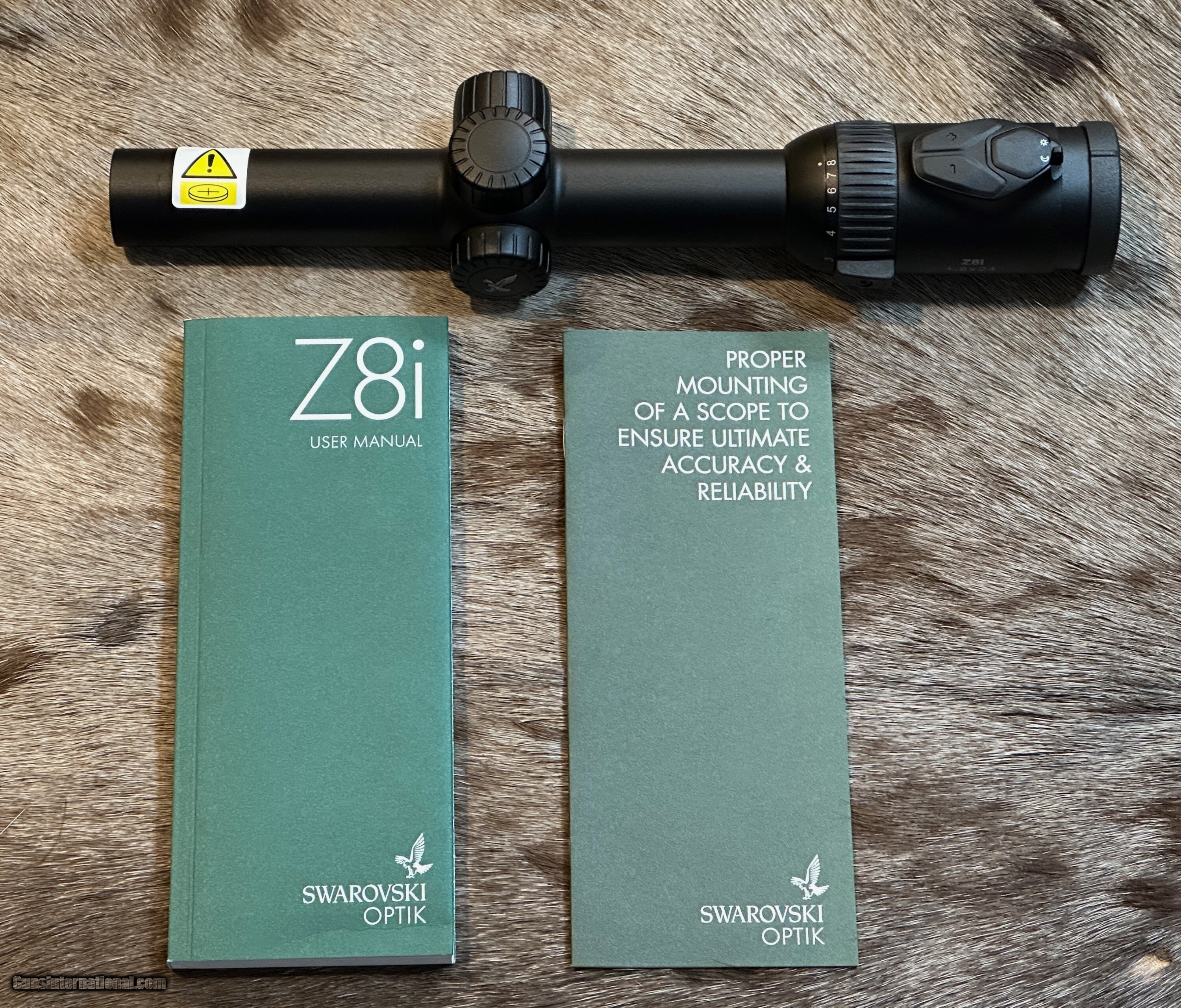 Description: NEW SWAROVSKI Z8i 1-8x24 4A-I 30MM ILLUMINATED SCOPE WHY BUY THE Z8i 1-8x24 4A-I 30MM ILLUMINATED SCOPE: The Swarovski Z8i II 1-8x24 4A-I 68715 is a masterpiece of optical engineering, designed for hunters and shooters who demand the utmost precision and versatility. This riflescope is a perfect blend of cutting-edge technology and Swarovski's renowned craftsmanship, offering a seamless transition from a 1x magnification for close-range engagements to 8x for precision at a distance. The Z8i's 24mm objective lens ensures a bright, clear image, even in low-light conditions, making it an ideal companion for dawn and dusk hunts. What sets the Z8i apart is its 4A-I reticle, which is illuminated for enhanced visibility and precision. The reticle's design ensures quick target acquisition and accuracy, even in challenging conditions. The Z8i's optical clarity is unmatched, providing a crisp, clear image that allows for quick and accurate target identification. Built to withstand the rigors of the field, the Z8i II is both rugged and lightweight, ensuring it won't weigh you down. Its sleek design and intuitive controls make it a joy to use, while the robust construction ensures it can handle the toughest conditions. The Z8i is not just a riflescope; it's a tool that enhances your shooting experience, providing the confidence you need to make the perfect shot. KEY FEATURES OF THE Z8i 1-8x24 4A-I 30MM ILLUMINATED INCLUDE: