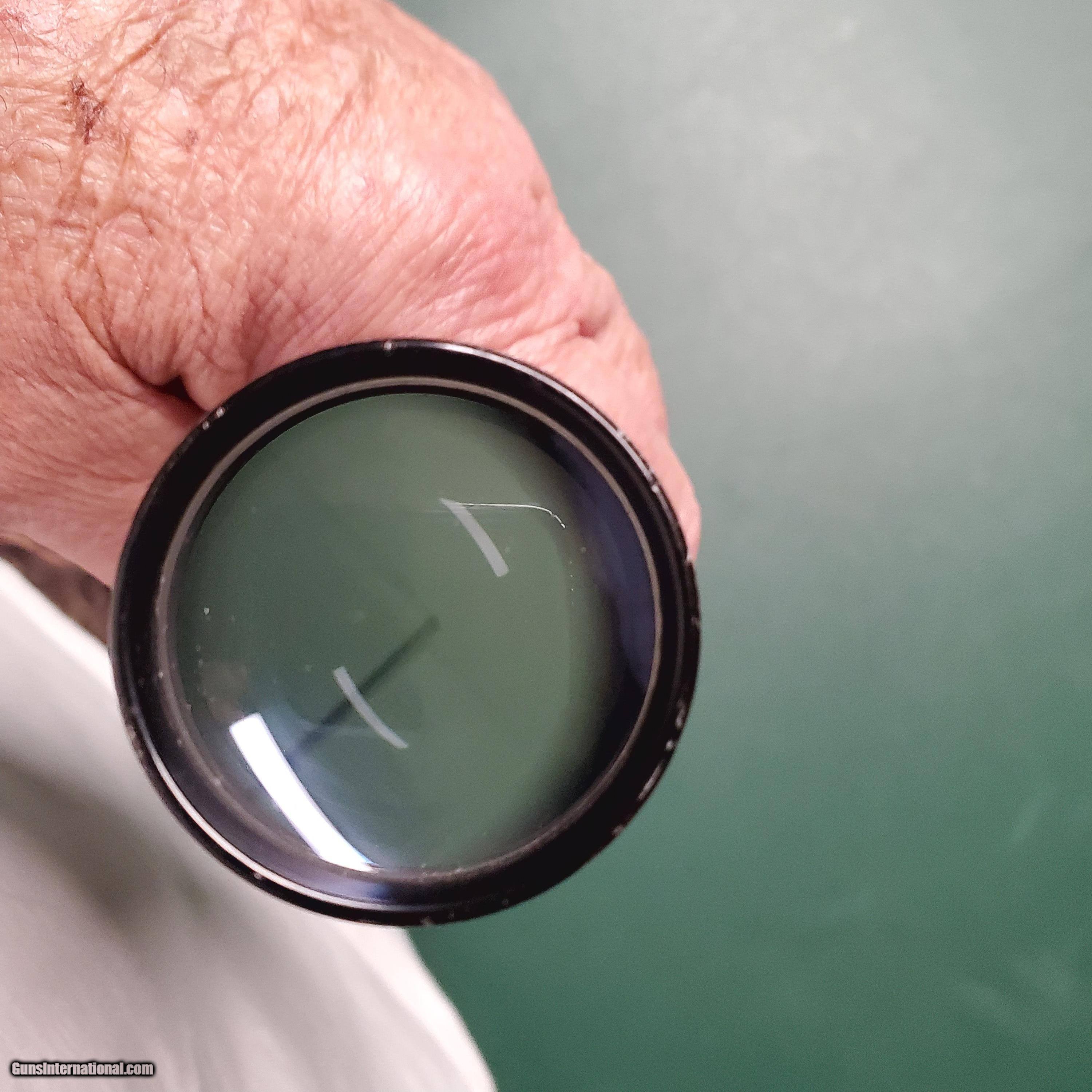 Description: Excellent optics by Pecar. Clear, sharp 1.5-4 power variable scope, 26mm tube, post and crosshair reticle. Light marks on lens of scope in picture is reflected light. SOLD |