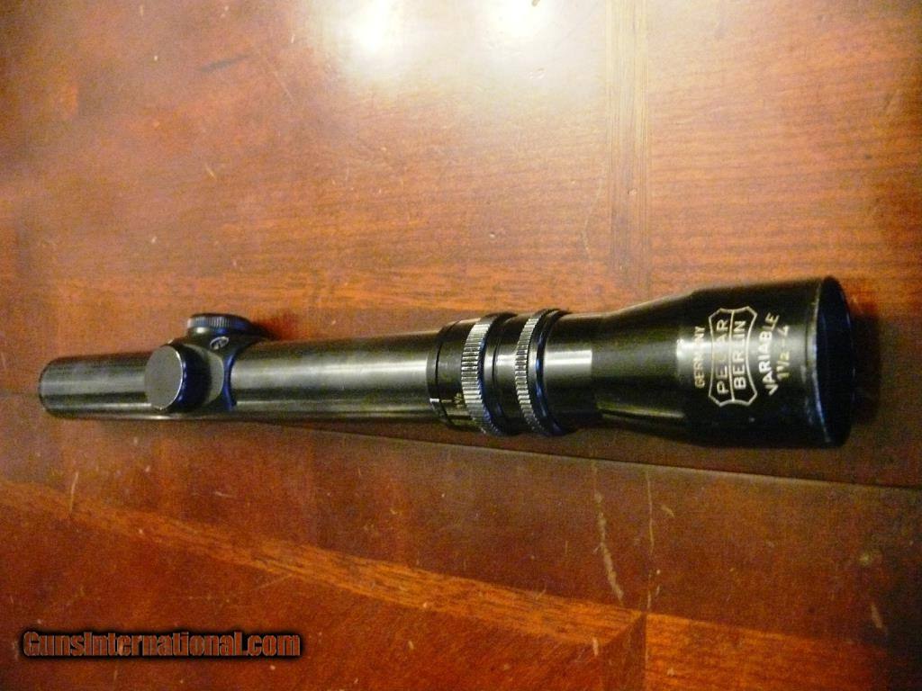 Description: Sold to Dave//Early post war scope, with 26mm tube. Reticle is a tapered post with a single cross wire. Optics are clear and the scope doesnt have any damage. This scope would be great on any German combination gun or stalking rifle due to its length. Picture 4 shows the over-all length. SOLD |