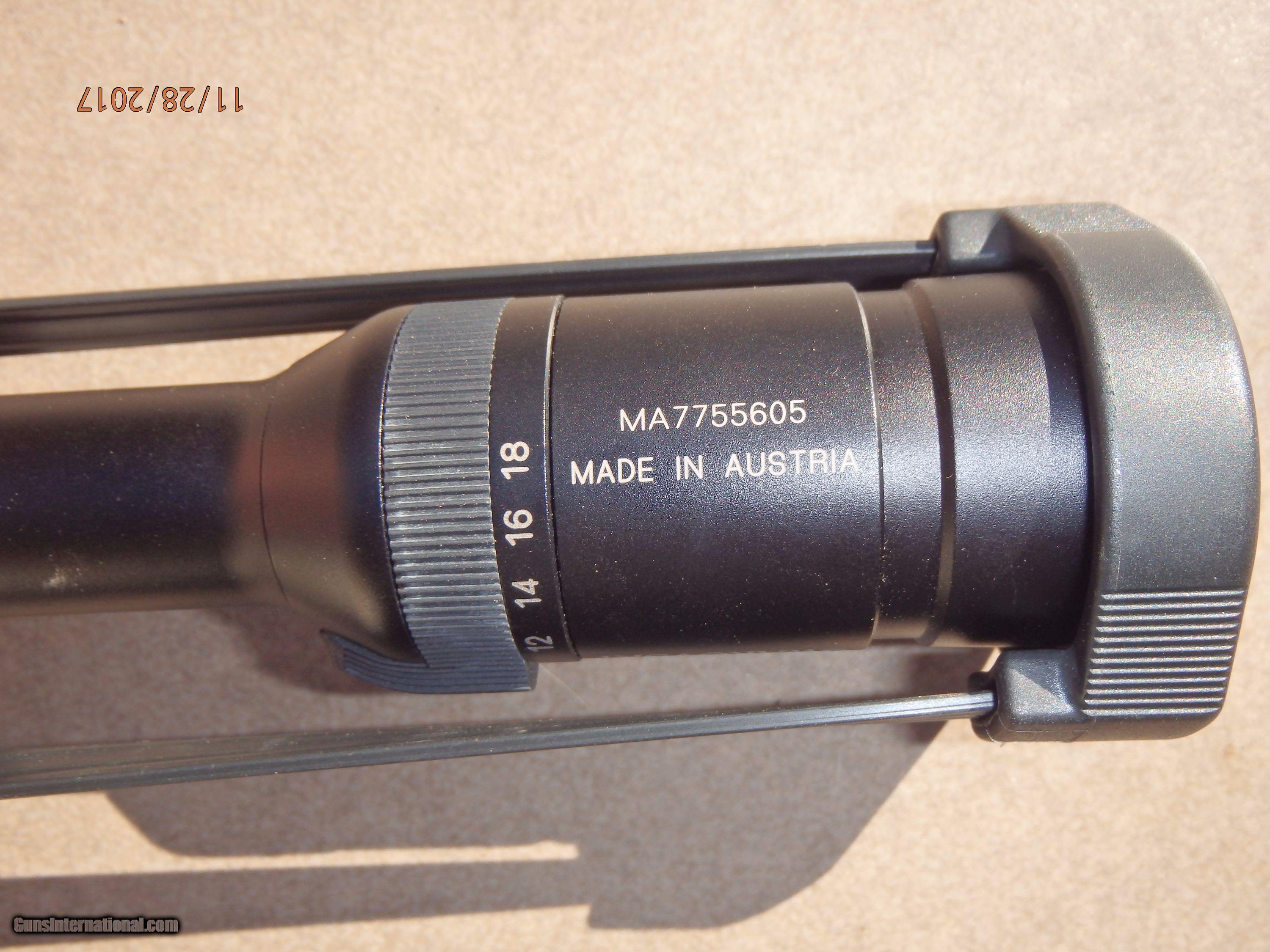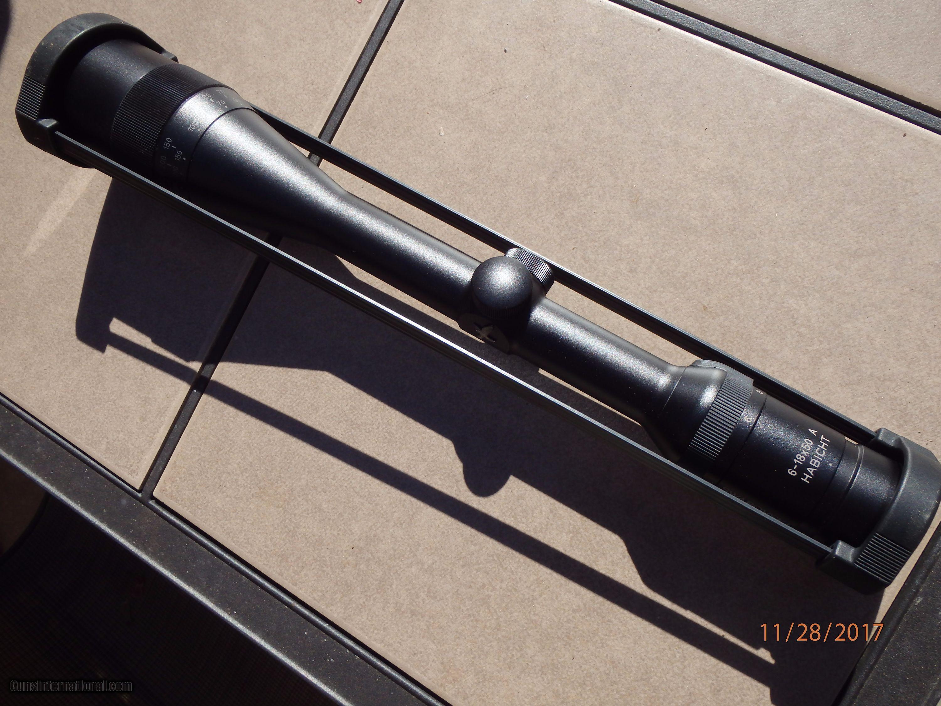 Description: Swarovski 6-18 x 50 A Habicht Rifle scope. Mounted on rifle, bore sighted but, never used. Too much scope for my rifle. Really wish I could use this fine piece of Austrian craftsmanship. Amazing clarity and light gathering ability. With covers. NIB condition. Not a mark on it anywhere. SOLD |