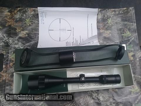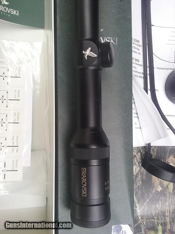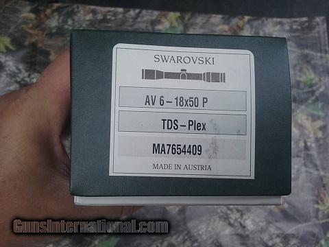 Description: For sale Swarovski AV 6x18x50MM P TDS-Plex scope in like new condition. Scope has a couple very tiny handling marks with prfect glass and superior optics quality! Included is the original box all paperwork, ballistic charts for caliber/velocity load used. Also included is the original sunshade and lens covers. Priced well below the original cost at $895.00+shipping SOLD |