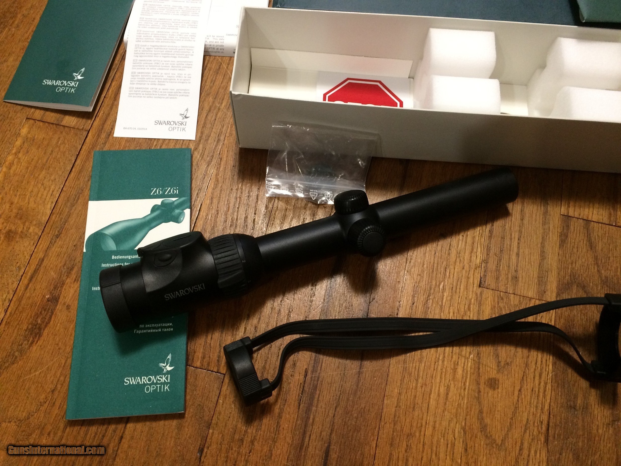 Description: Swarovski Optic, 1-6x24 Z6i 30mm riflescope like new in box. Extended eye relief. Ultra clear, very high quality glass. Standard shipping is included in price. Be sure to see my other listings. SOLD |