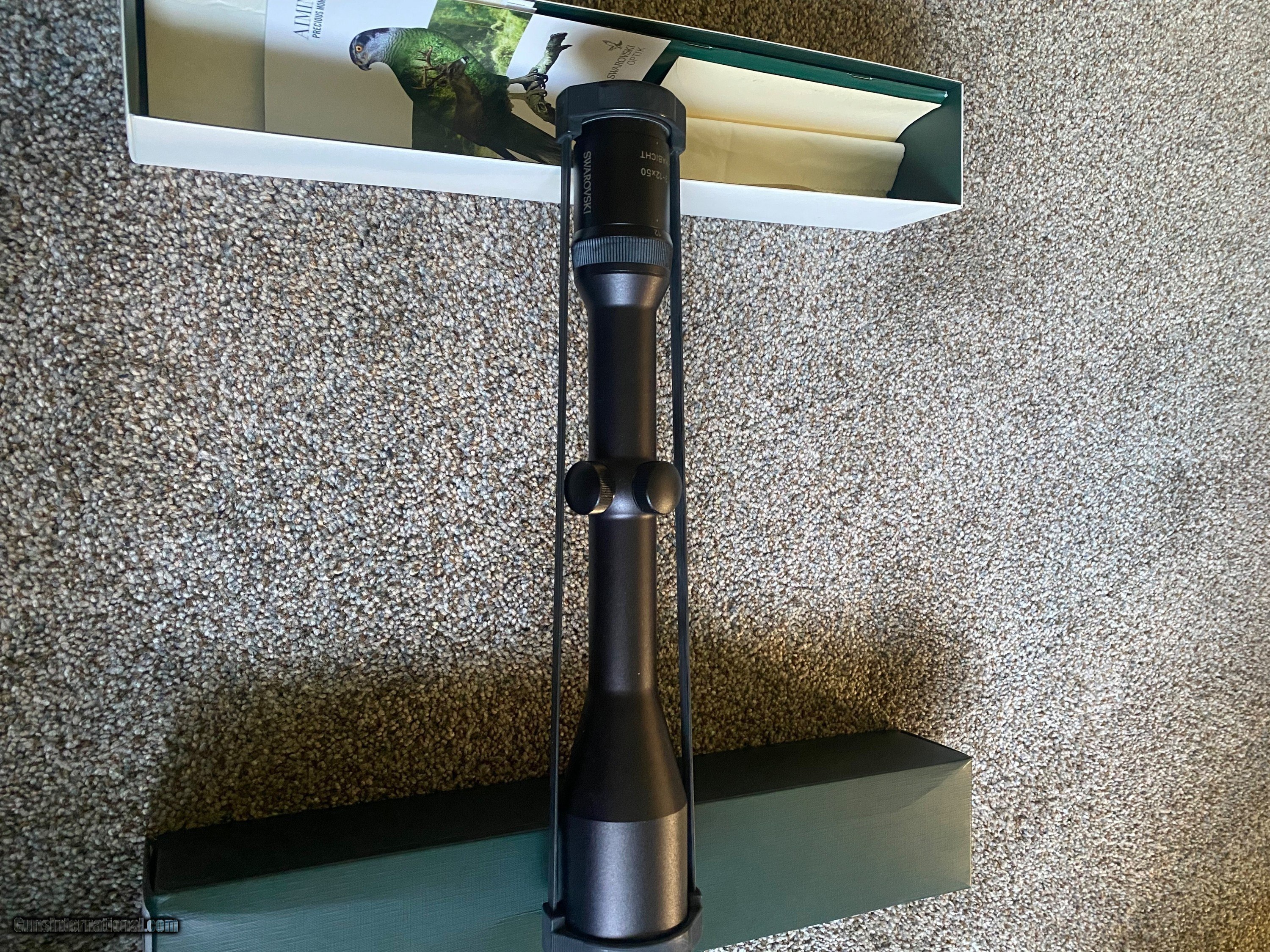 Description: Absolutely mint Swarovski hunting scope!! This scope has been lightly used No ring marks. This is a first focal plane scope with incredible clarity. Power is 3-12 by 50mm. $1,050.00 SOLD |