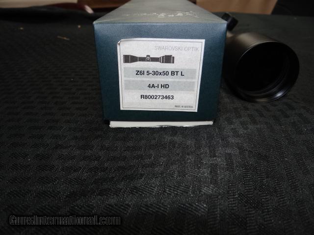 Description: Swarovski Z61 5x30x50 BT L 30mm scope. The top of the line scope with bullet drop turrets and illuminated reticle. Scope is as new in box with all paperwork and accessories. Retail is over $3000.00 SOLD |