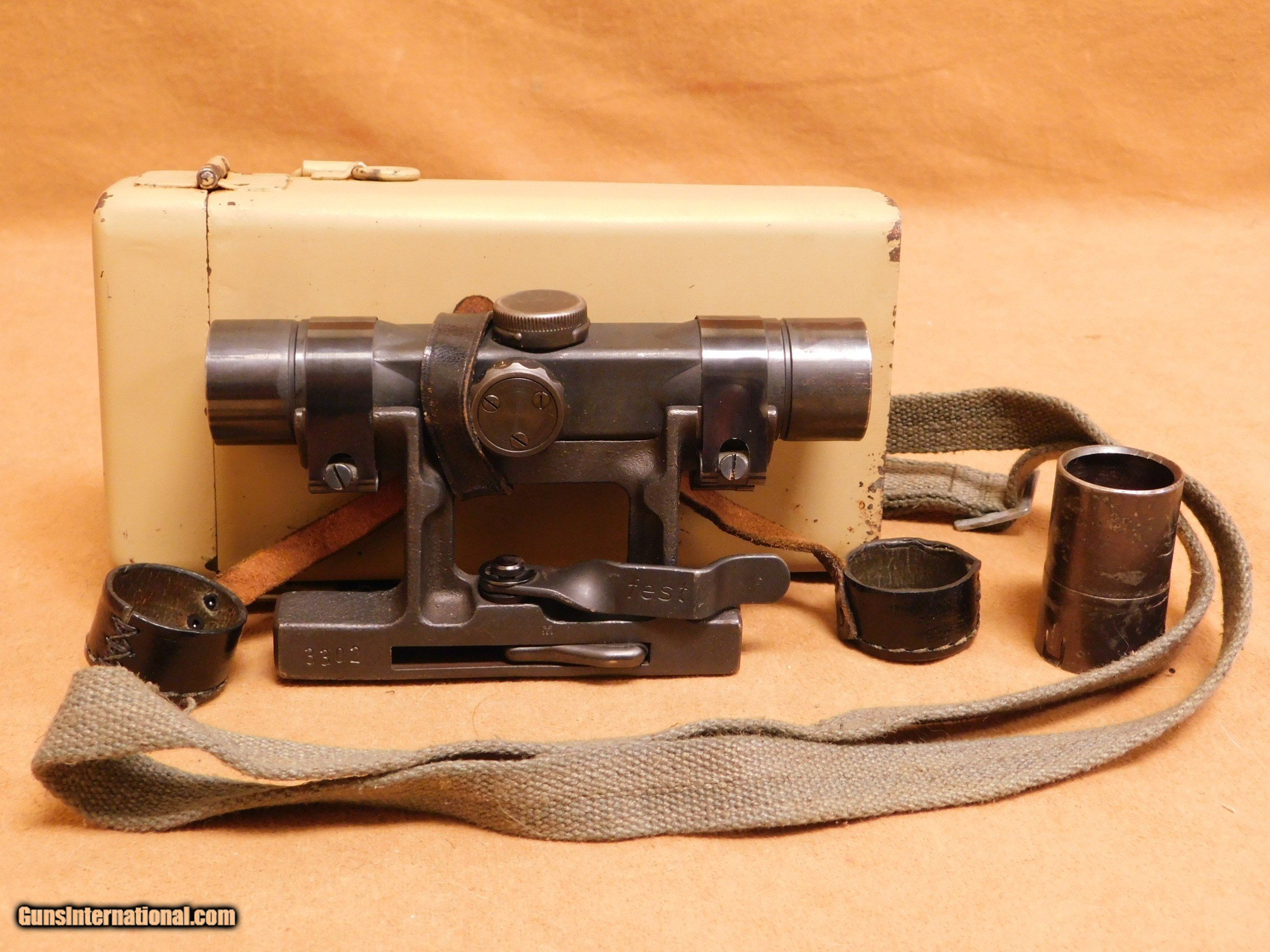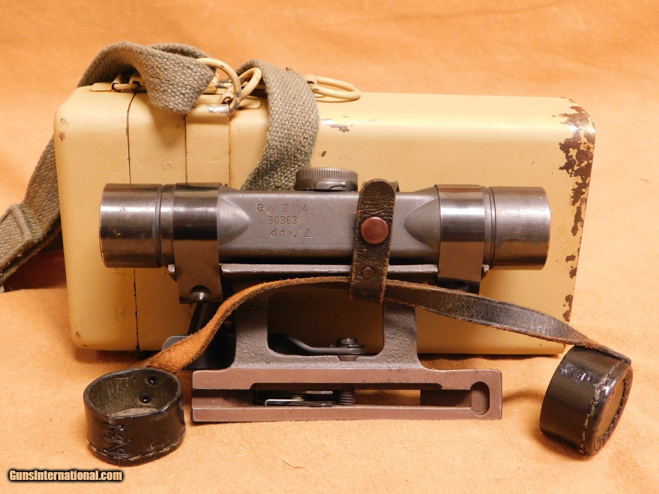 Description: This is a nice, mid-war (1944) ZF4 scope with crystal-clear optics. It is DDX proofed, with a proper "WaA359" Waffenamt on the scope mount. It comes in its original metal scope can and strap to complete the rig. All items are also available for sale in our brick & mortar store and are subject to prior sale. Think long, think wrong. Payment On firearms, we typically only accept credit cards or money orders/cashier's checks.