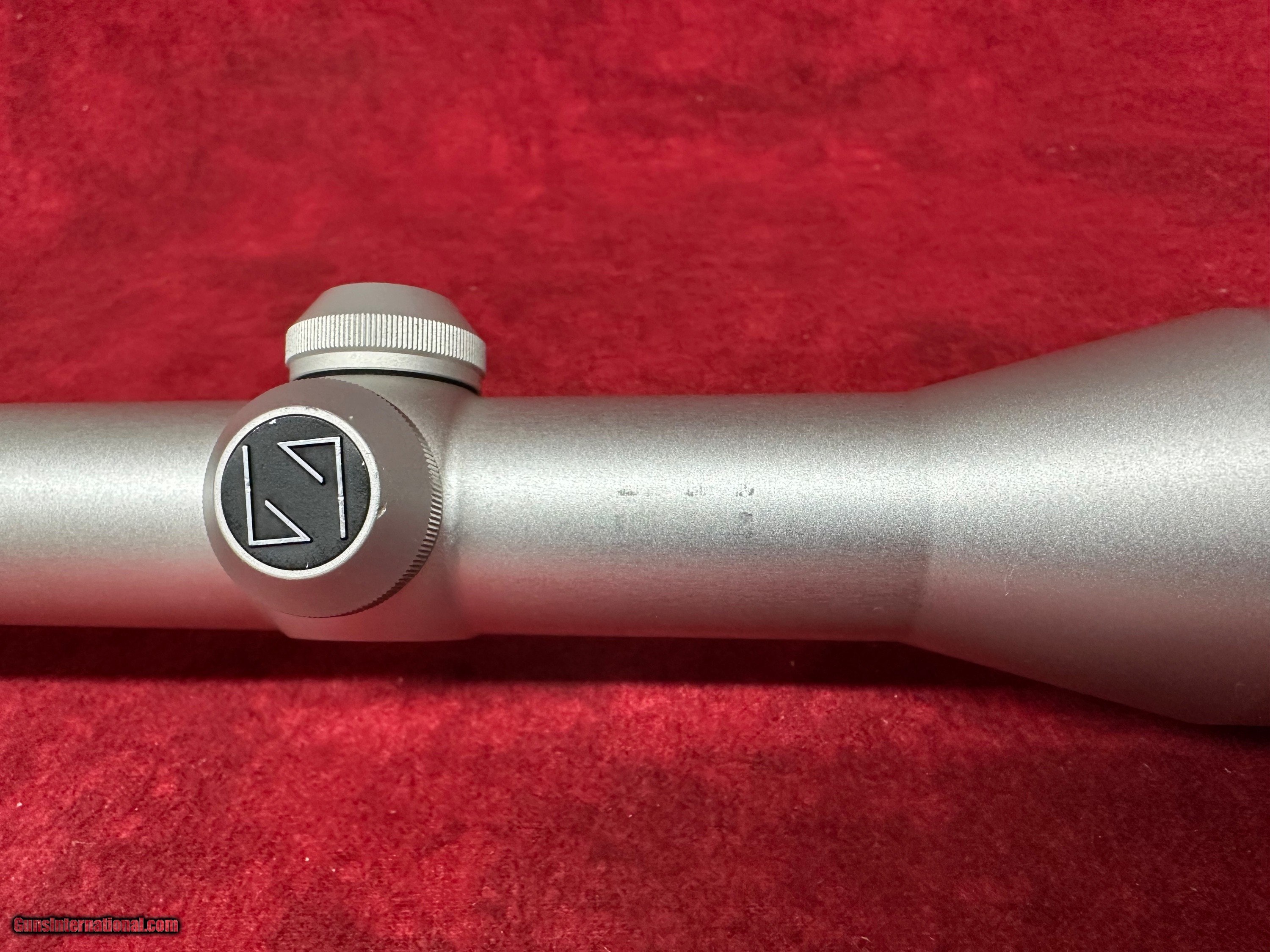 Description: Zeiss Classic Diavari 1.5-6x42 T* Silver Rifle Scope 30mm Tube This scope is in very nice shape. Has ring mounts from being previously mounted. $35.00 S&H Zeiss Classic Diavari 1.5-6x42 T* Rifle Scopes are variable low-magnification Rifle Scopes with Zeiss quality optics. The Zeiss Classic Diavari 1.5-6 x 42 Rifle Scope features a 42mm Objective Lens making it an ideal size for any hunting application. The Classic Diavari Rifle Scope also has a variable 1.5x - 6x magnification giving you a clear and sharp image of your target. The variable low magnifications combined with the 42mm objective lens will maximize the amount of light entering the rifle scope, producing a bright image of your target. In addition to these technical features is the brilliant image quality and high detail recognition of Zeiss Classic Rifle Scopes. The Classic Diavari 1.5x-6x 42mm Rifle Scope contains Zeiss T* MultiCoatings, which increases light transmission and gives off a higher contrast. The Zeiss Classic Diavari 1.5-6x42mm T* Rifle Scope also features a rugged construction that is built to survive the toughest of conditions. The Zeiss Rifle Scope 's housing is made of solid aluminum making it strong and lightweight. The aluminum housing has an anodized surface that will protect the Rifle Scope against scratches. The rifle scope is sealed tight, preventing dust and moisture from entering, and is also nitrogen filled making it fogproof. The performance of the Classic Diavari 1.5-6x42mm T* Rifle Scope by Zeiss does not disappoint as it is recoil-proof, and has an easy and precise sighting-in using the zeroed reticle adjustment and wear-resistant click mechanisms. These features of Zeiss Classic Diavari 1.5-6x42 T* Rifle Scopes make them high quality Rifle Scopes for big game hunters looking for great performance and bright images of their target. Specifications for Zeiss Classic Diavari 1.5 - 6 x 42 T* Rifle Scopes: Magnification: 1.5x - 6x Variable Objective Lens: 42mm Exit Pupil: 15mm - 7.0mm Twilight Factor: 4.2 - 15.9 Field of View / 100 yds: 66ft - 20.1ft Eye Relief: 80mm Dioptre Adjustment: - 4 / + 2 dpt. Square adjustment range / 100 yds: 6.9 ft Adjustment per click / 100 yds: 0.36 in Parallax Free: 110 yds Reticles Available: #4, #8 Diameter objective tube: 48mm Diameter center tube: 30mm Diameter eyepiece tube: 41mm Length: 12.8 in Weight: 16.9 oz Features of Zeiss Classic Diavari 1.5-6x 42mm T* Rifle Scopes: