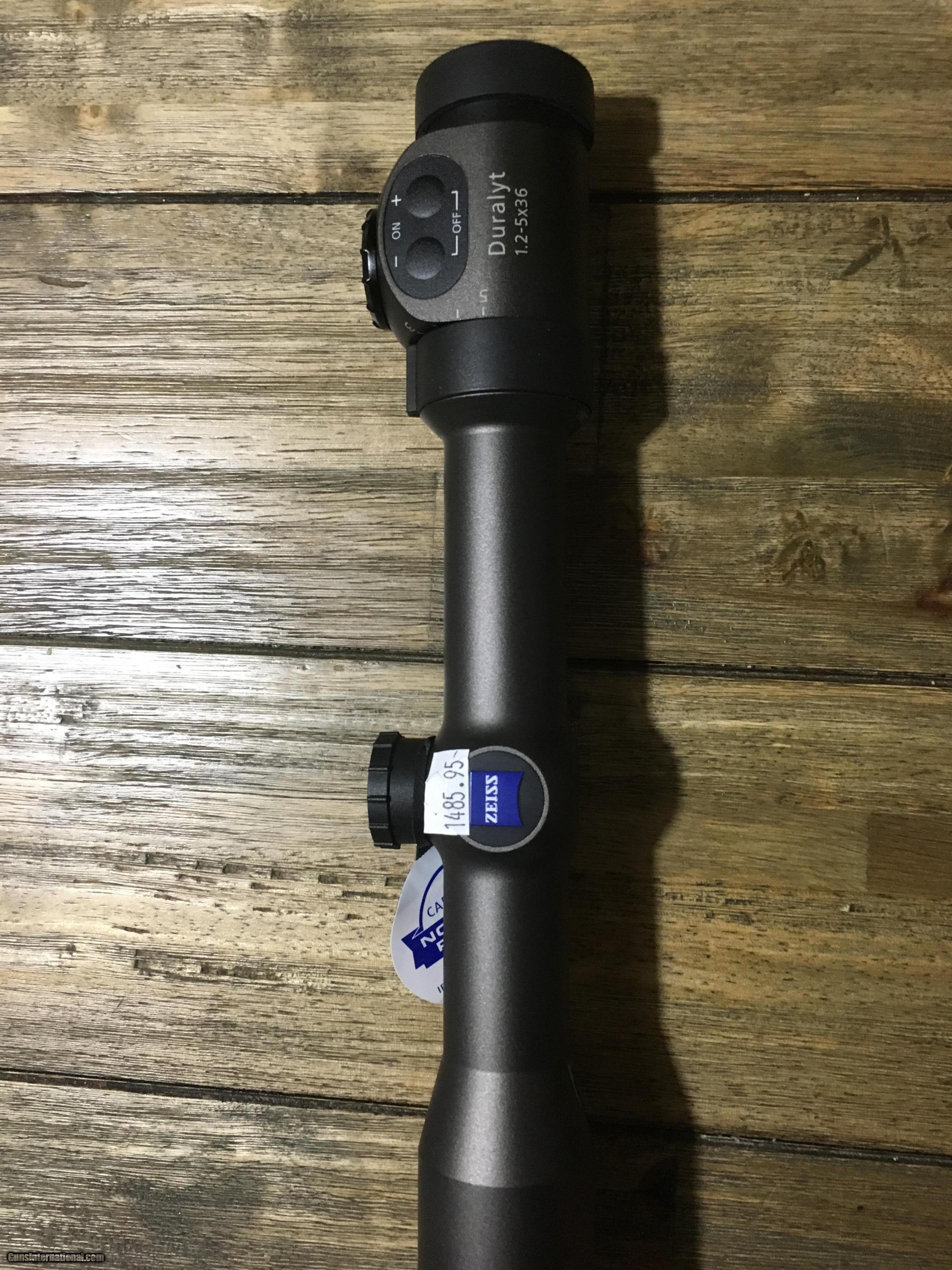 Description: Zeiss Duralyt 1.2-5-36 with illuminated reticle. 30mm tube. Reticle #60. This is a brand new scope with box & papers. S & I $20. More pics upon request. SOLD |