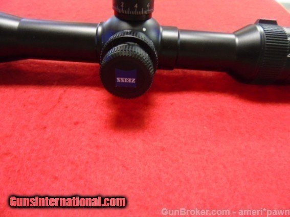 Description: Counted among the finest optics in the World,the German made Zeiss scopes are second to none.This model is discontinued by the manufacturer and getting harder to find by the day.The illuminated reticle delivers outstanding performance in low light situations.Previously owned,this particular scope is in like new condition.Features include; 56mm objective lens Variable 6-24x magnification T* multicoating for brilliant image quality Nitrogen filled fog proof Recoil proof solid aluminum housing anodized surface for scratch resistance 30mm tube length 14.8 weight 29.19 #73 reticle SOLD |